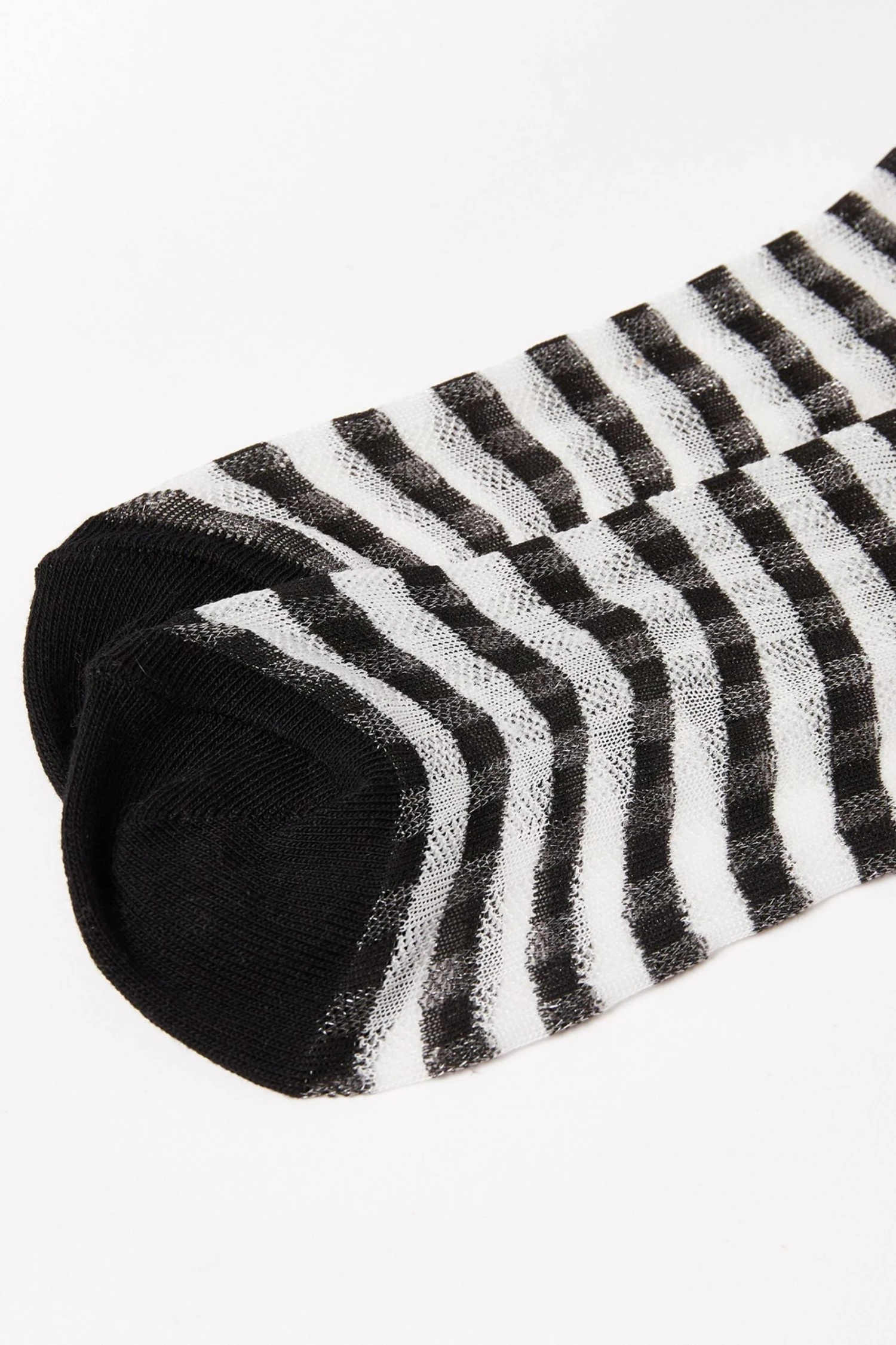 A new take on socks, these sheer monotoned gingham socks are perfect for pairing with your favourite pumps or making a statement with heels.