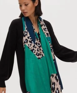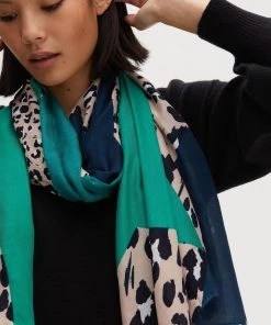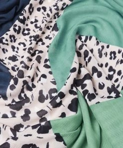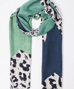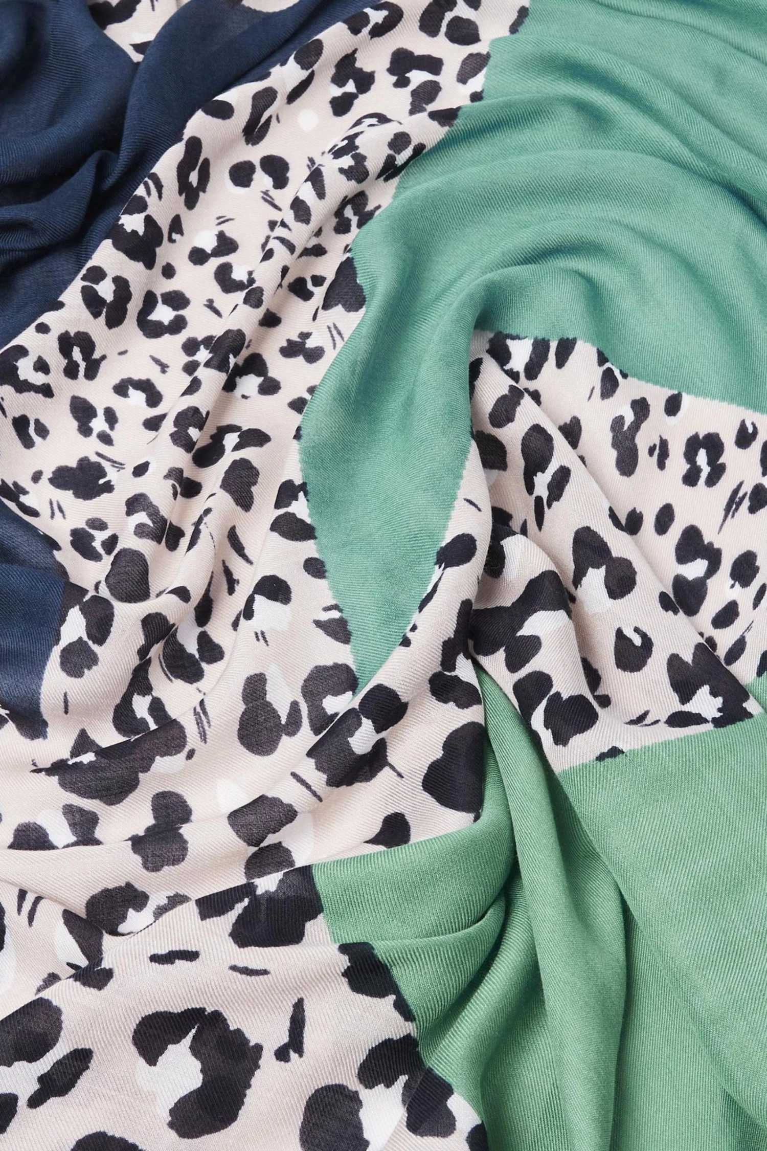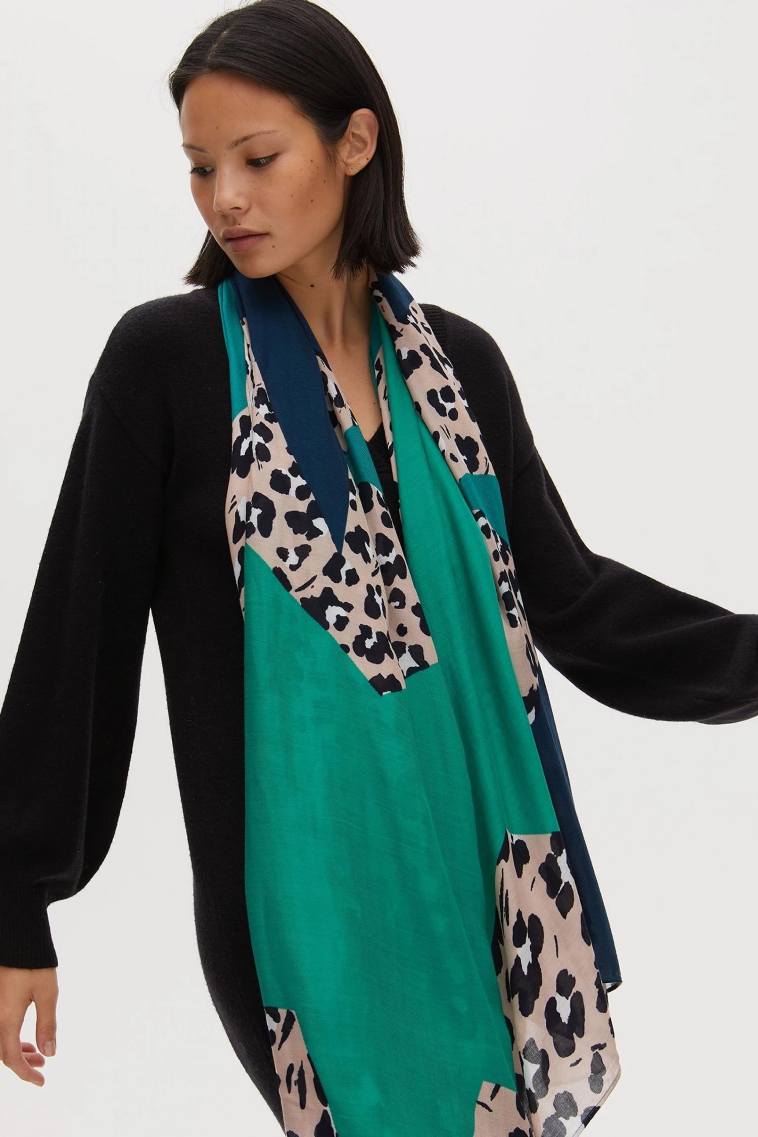Combining a colour block star print in blue tones with a fierce leopard print pattern, this lightweight scarf is complete with straight edging for a cold weather statement.