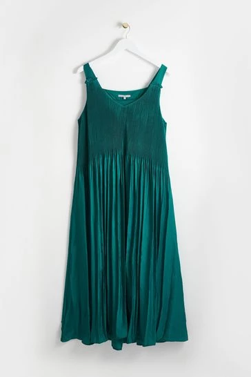 Oliver Bonas Blue Crushed Strappy Plisse Maxi Dress