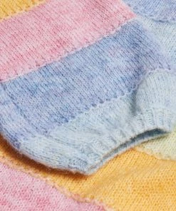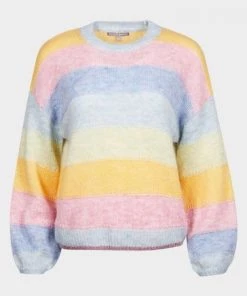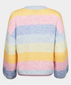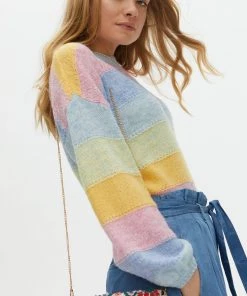 Be the rainbow in this stripe knit colourful gradient jumper. In a relaxed fit with cosy drop shoulders and rib cuffs, this jumper has its own pot of gold at the bottom with a shimmering pink stripe detail.