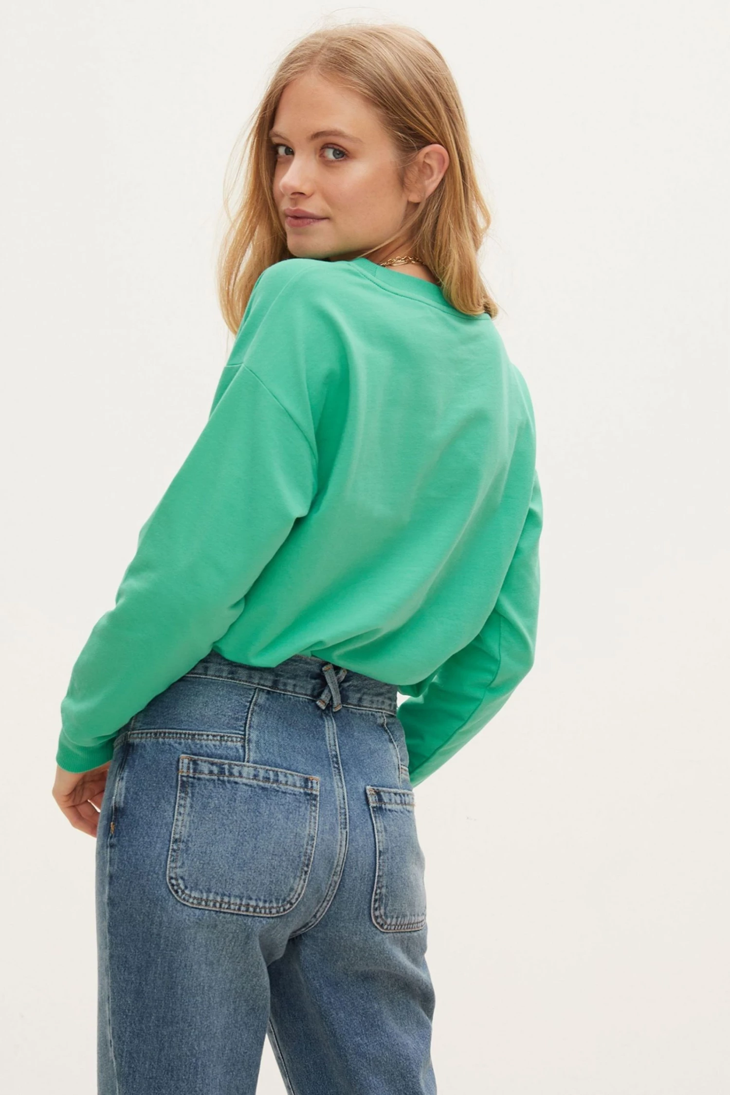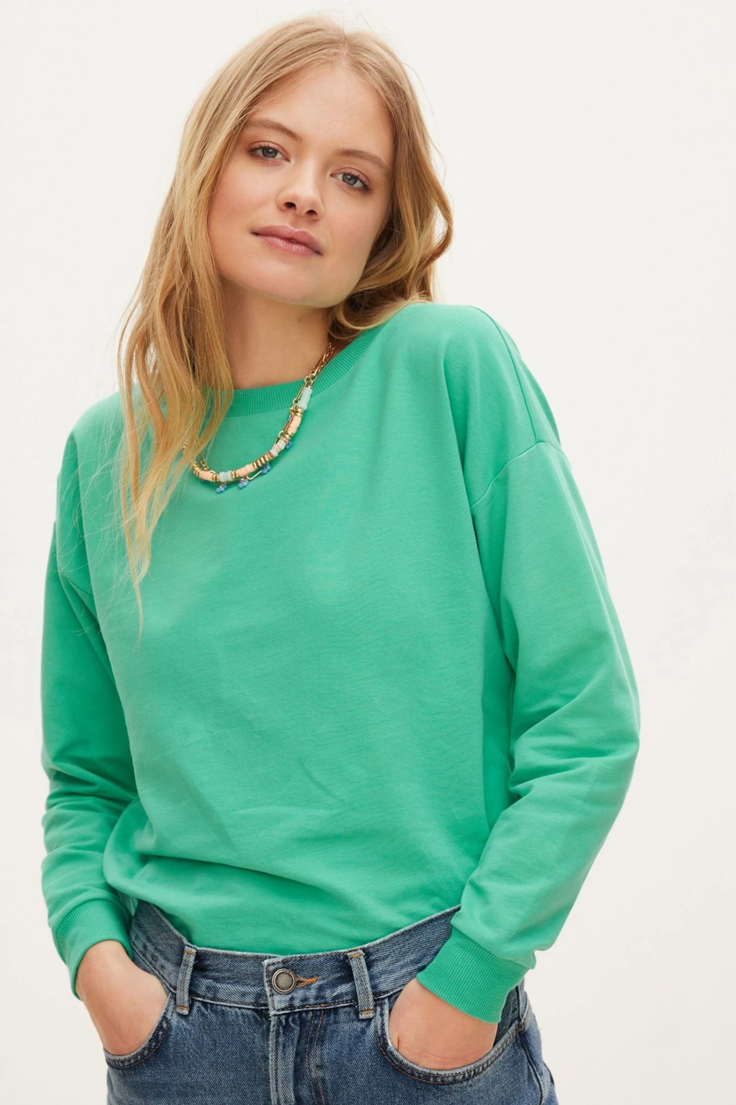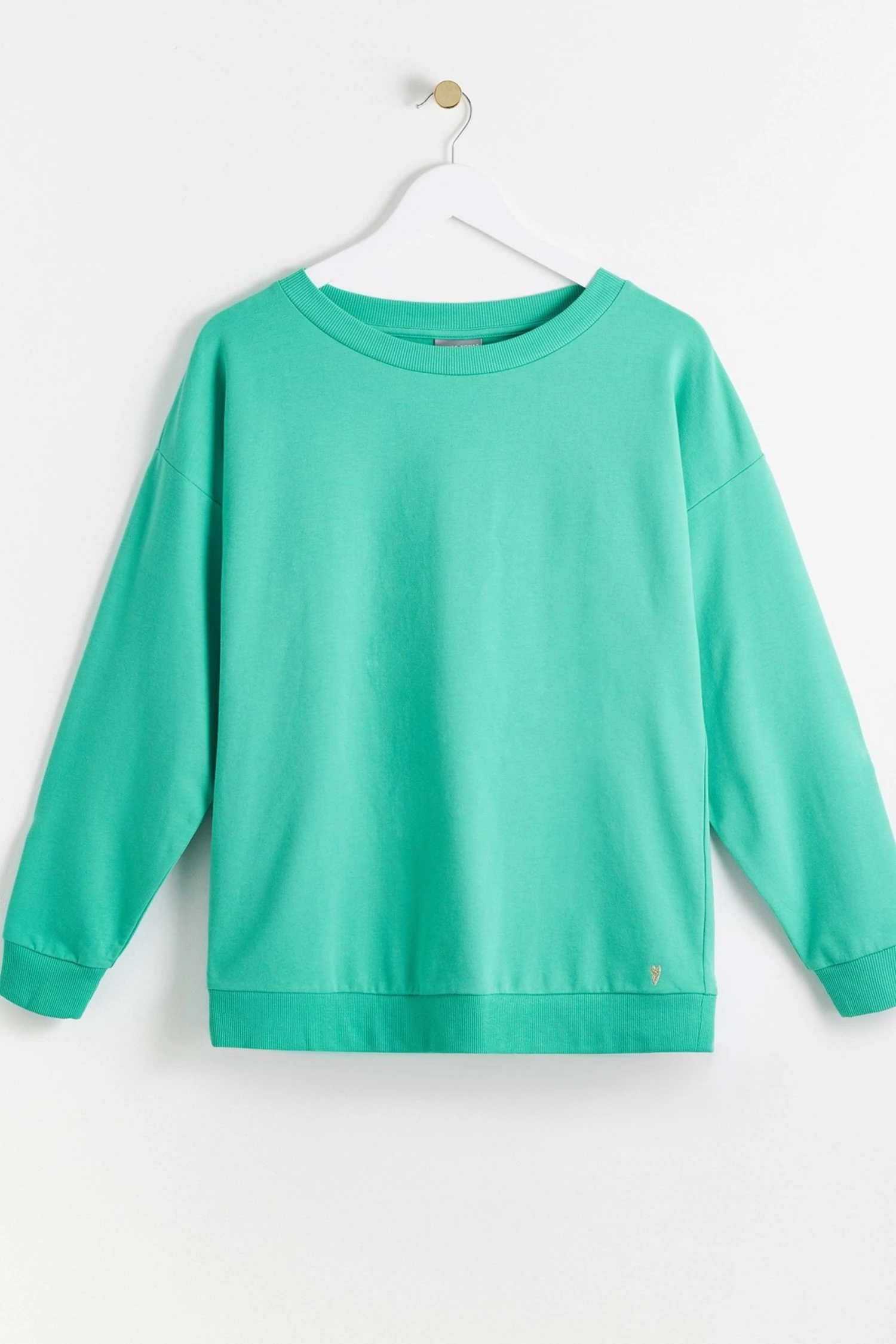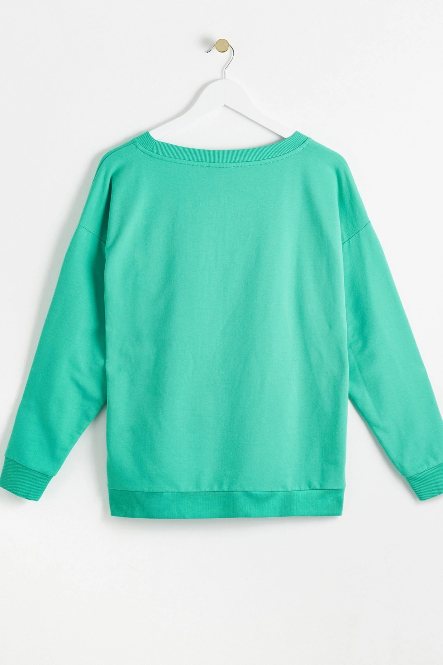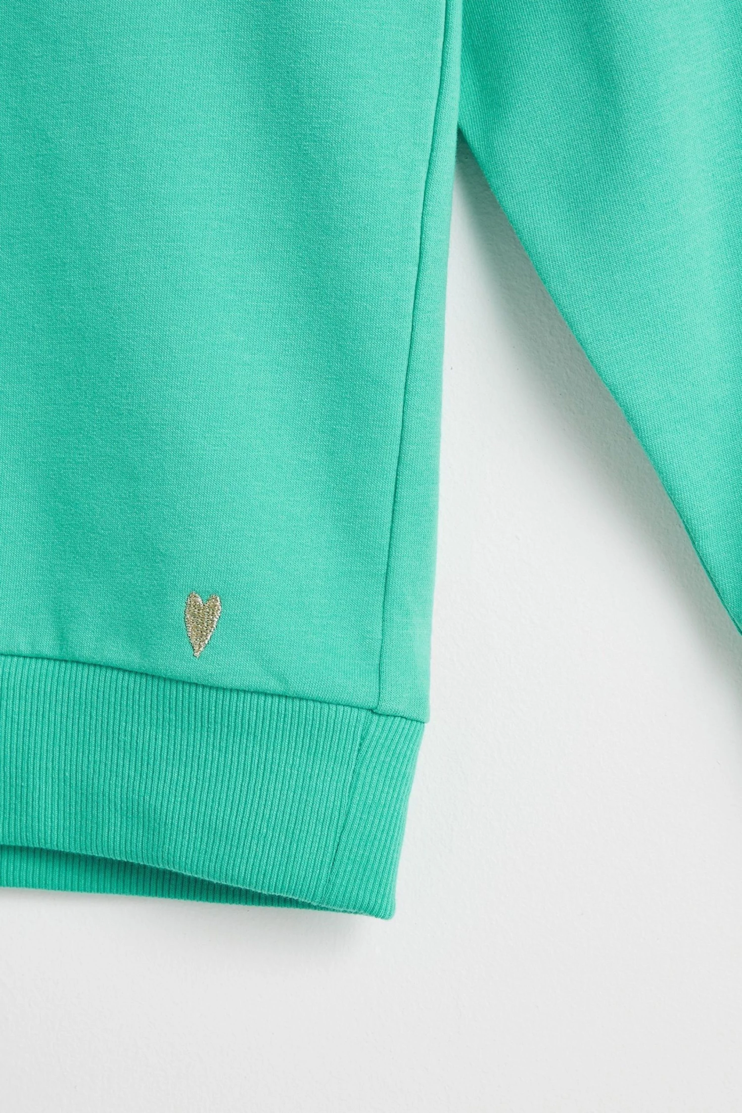 In a vibrant green tone, this supersoft sweatshirt is embroidered with a single golden heart and is completed with a slash neckline. A relaxed profile and ribbed hems completes this classic jumper. Pair with your favourite jeans and trainers for a cosy and on trend fit.
