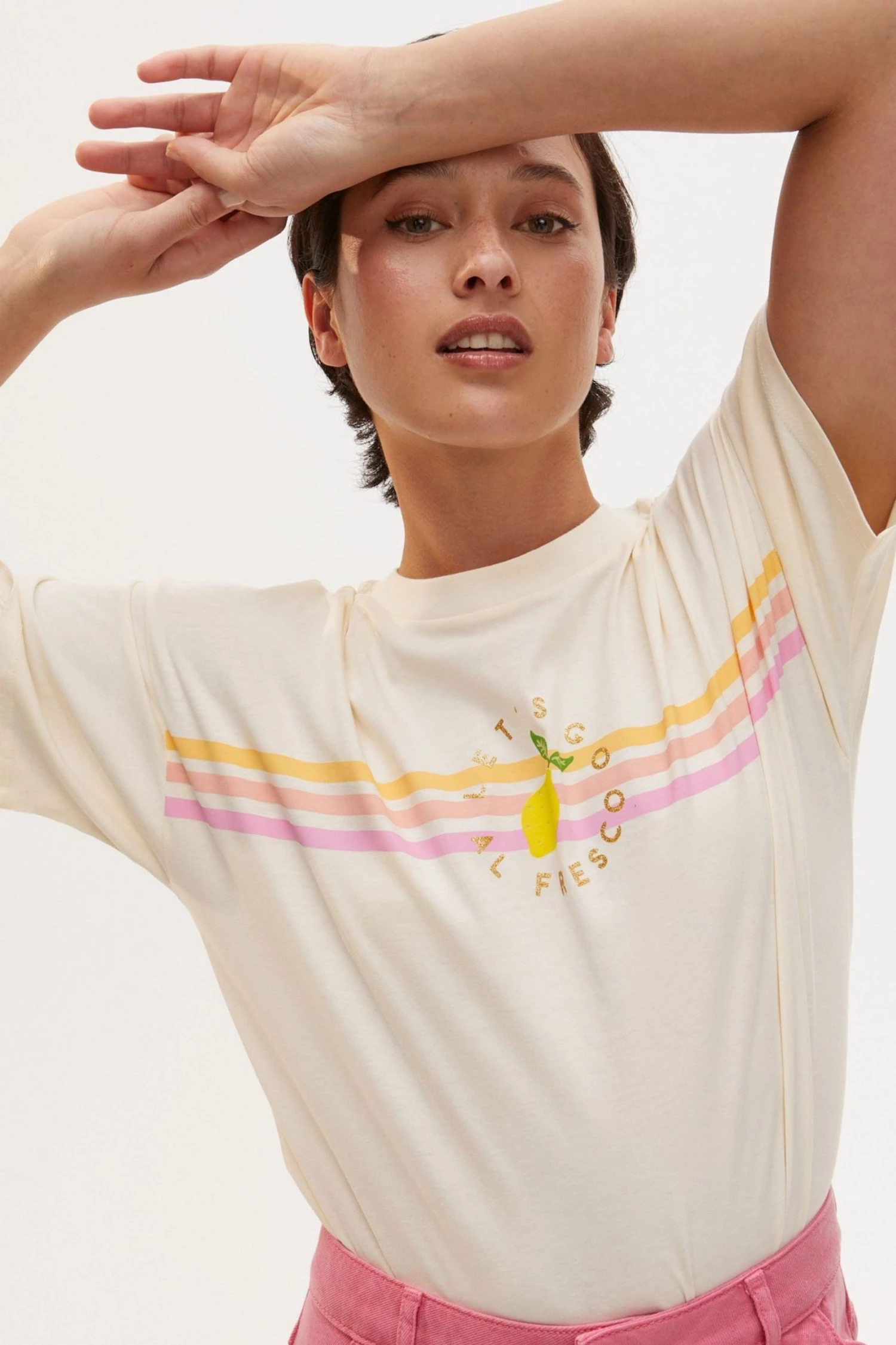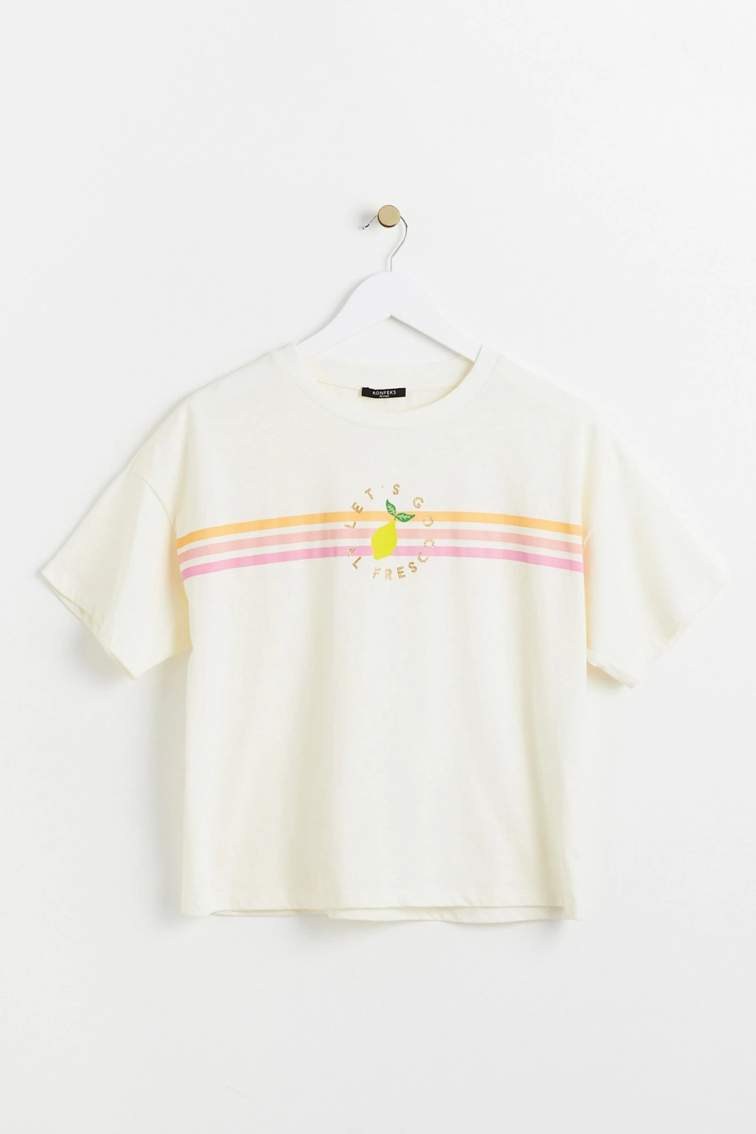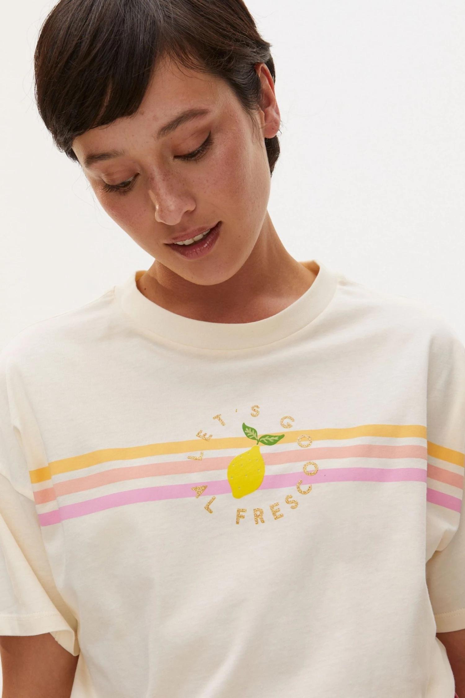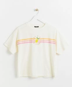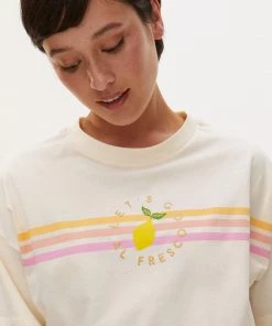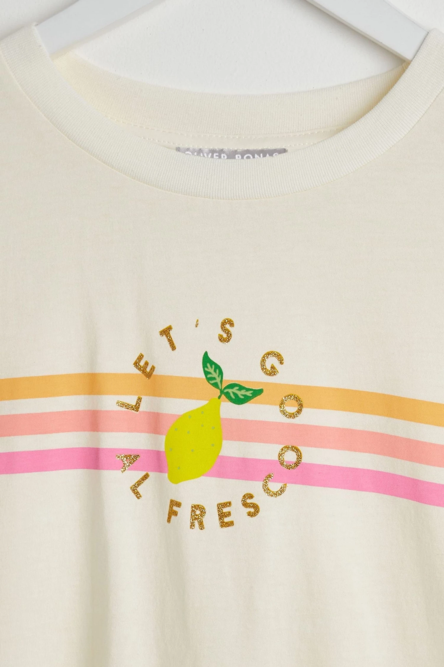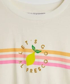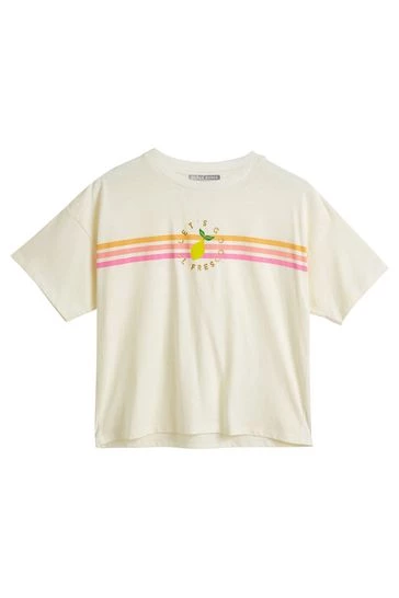 Squeeze a little zest into your classic cream T-shirt with this slogan printed graphic design with scallop stitch detailing. With a round neckline and relaxed fit, this T-shirt in a soft cotton fabric adds an alfresco twist to your wardrobe.