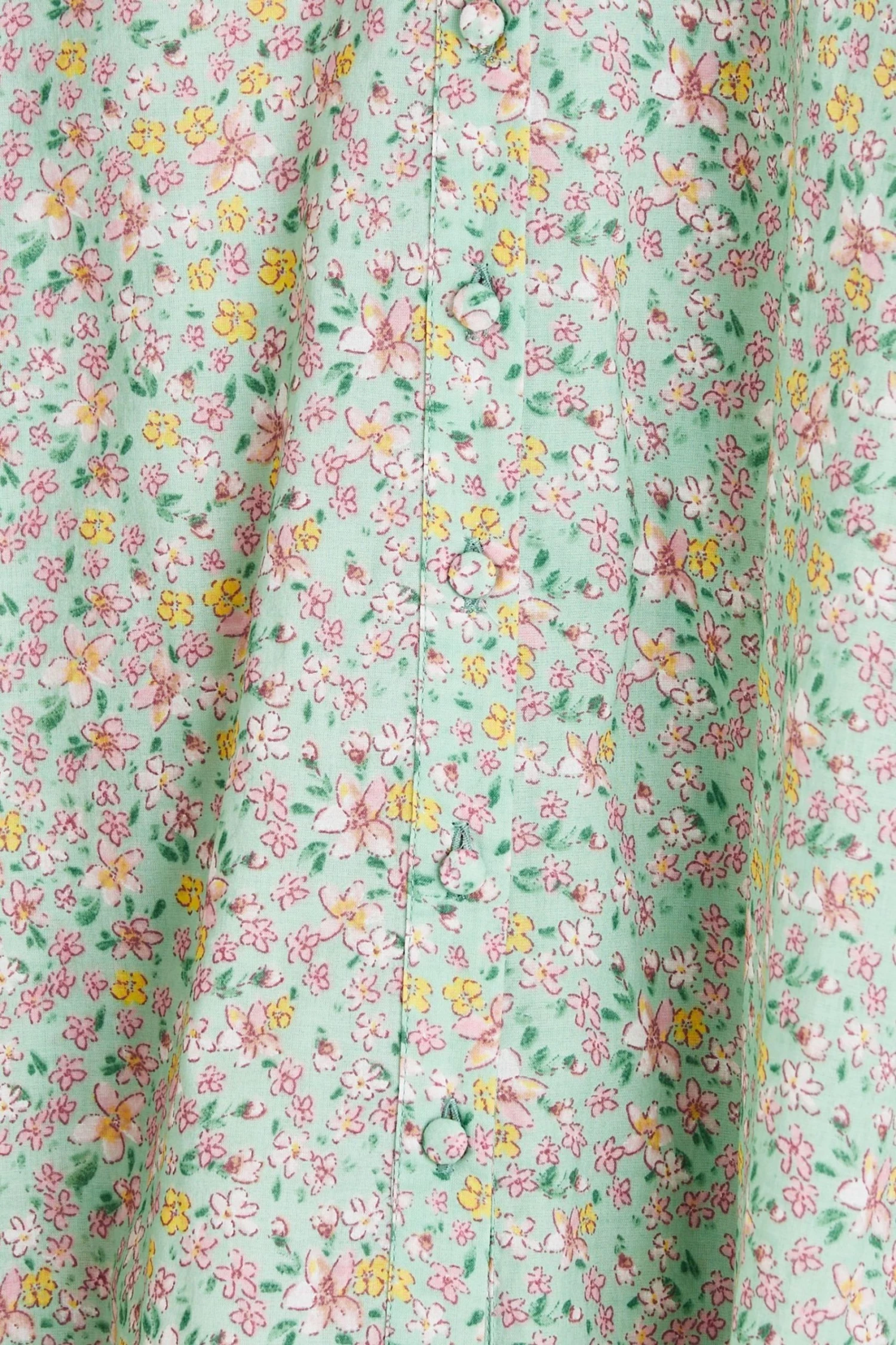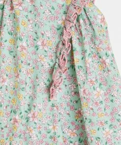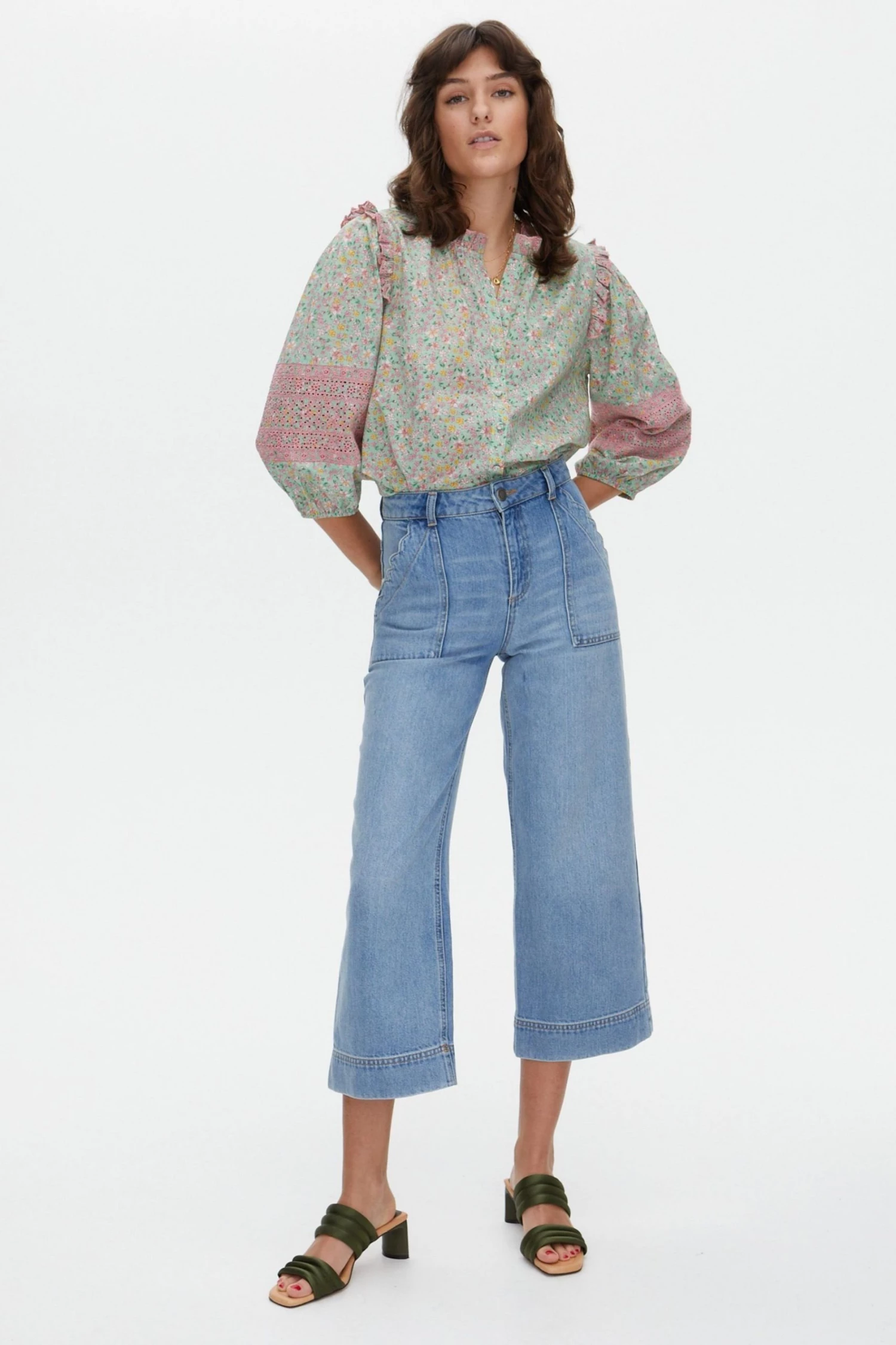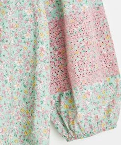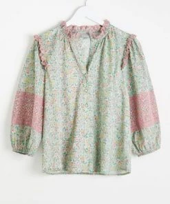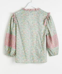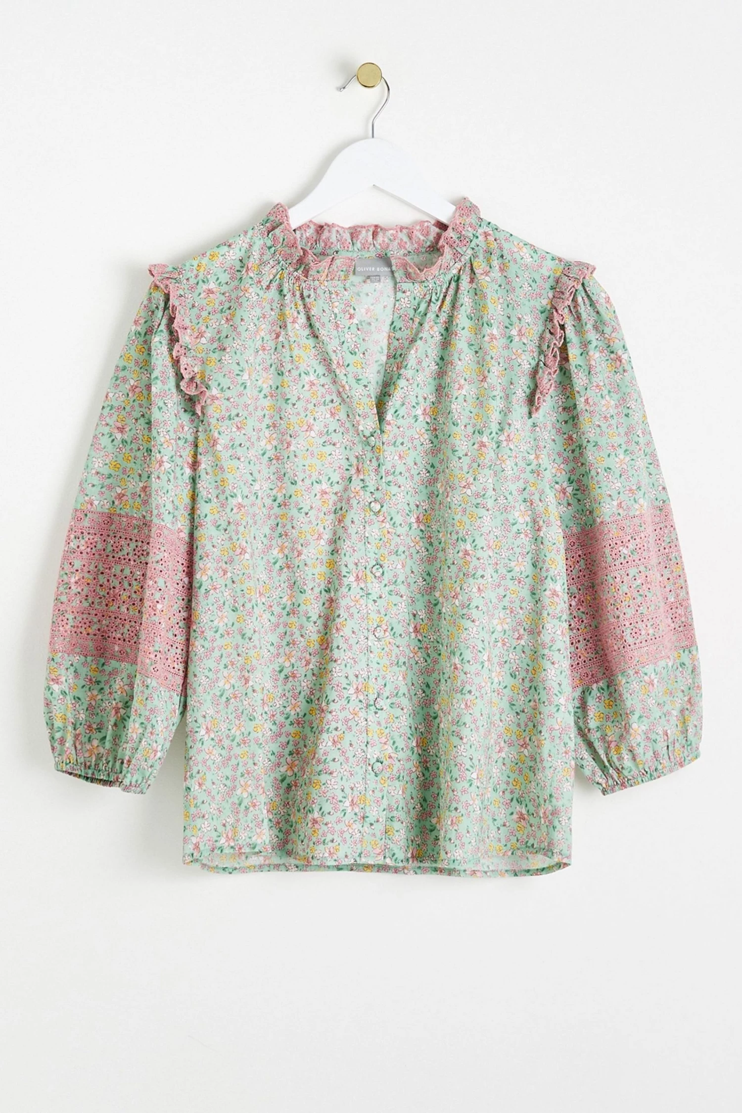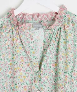 In an all over green and pink floral print, this blouse features button up fastenings, a high frill collar and three-quarter length sleeves with elasticated cuffs. A straight silhouette is combined with fill shoulder detailing for a fun yet put together summer wardrobe essential.