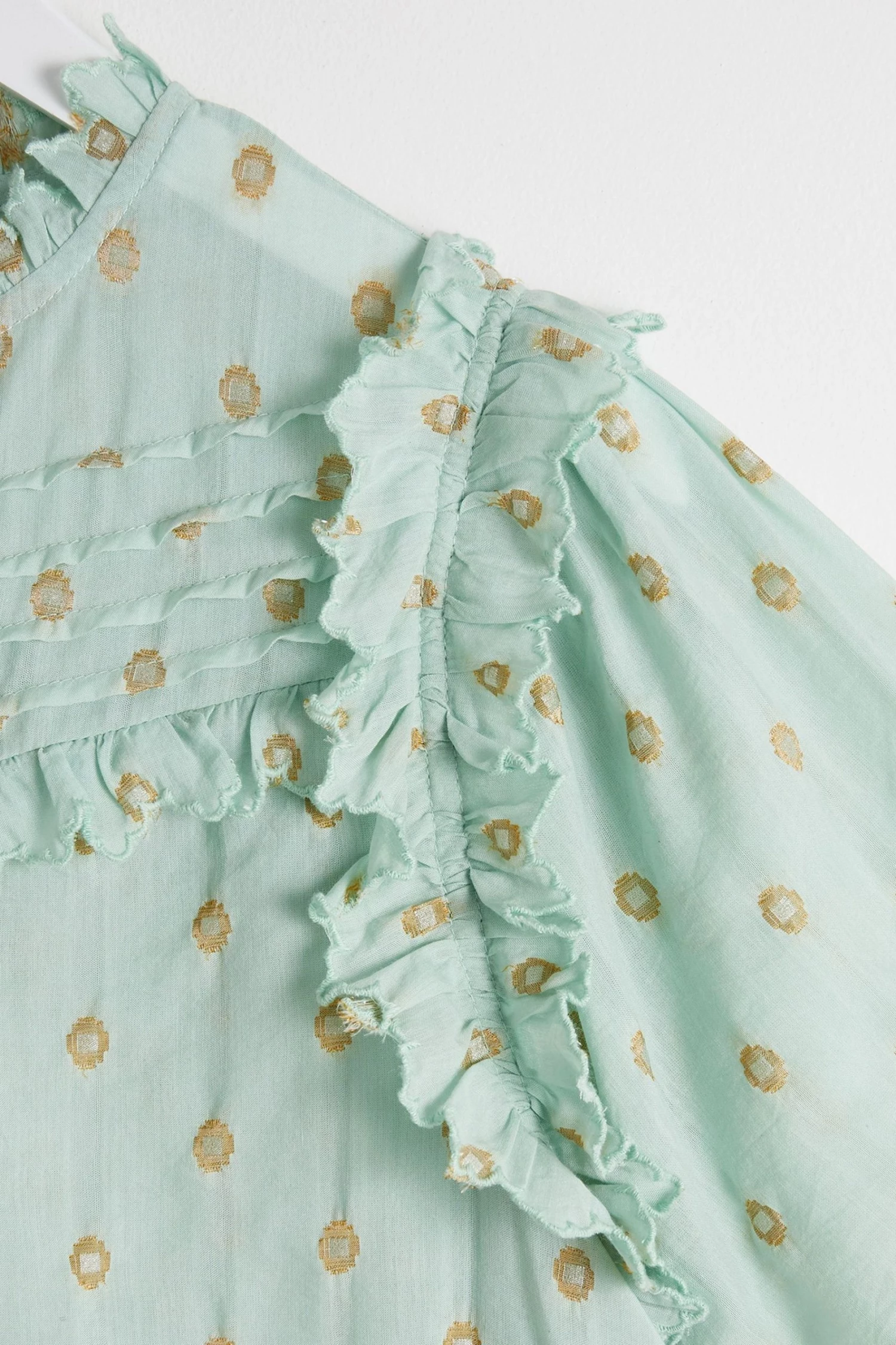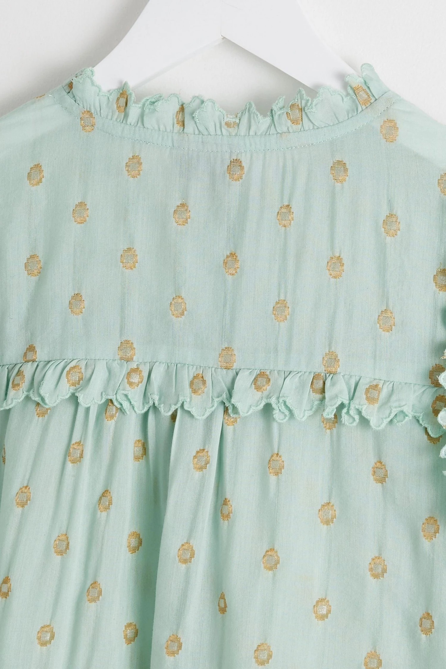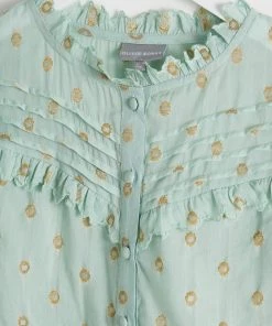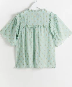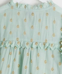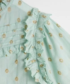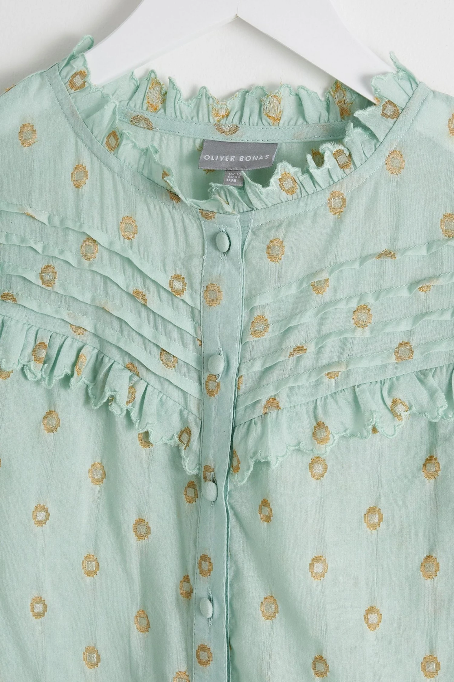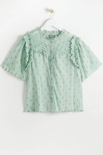 Oliver Bonas Green Foil Polka Dot Print Frill Blouse