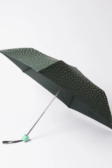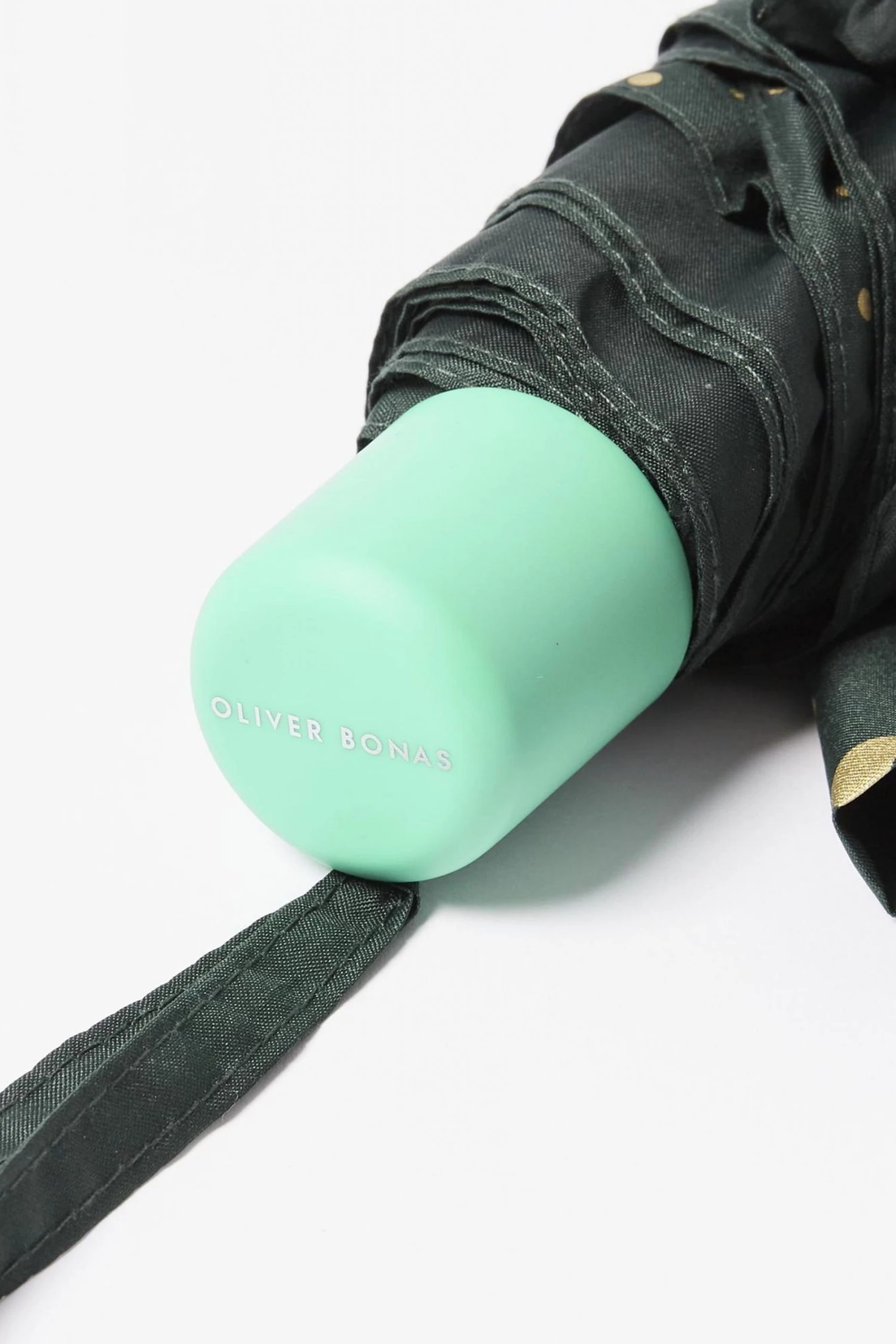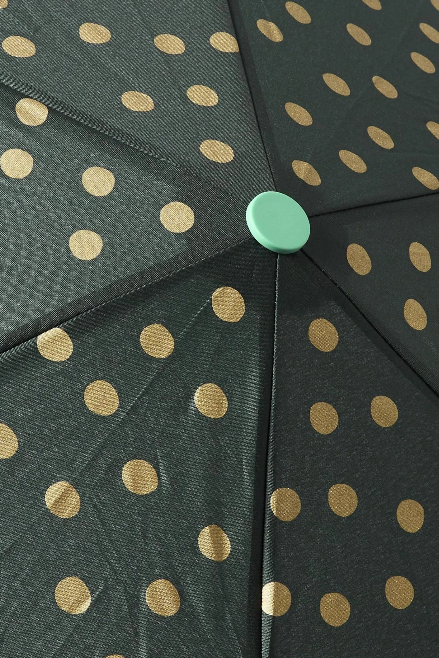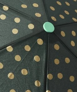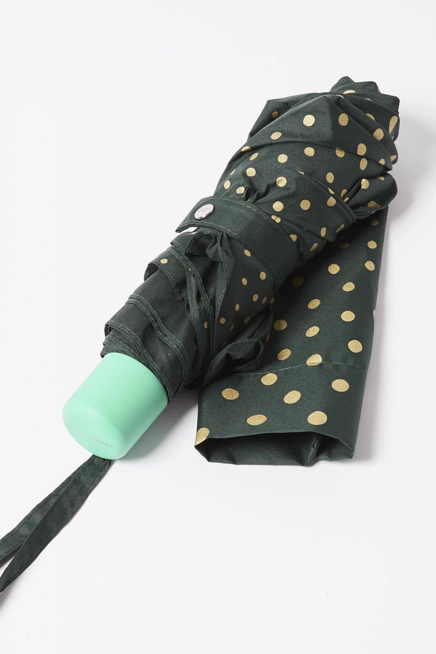 Stay dry in style with this deep green umbrella with a gold spot design and contrasting light blue handle.