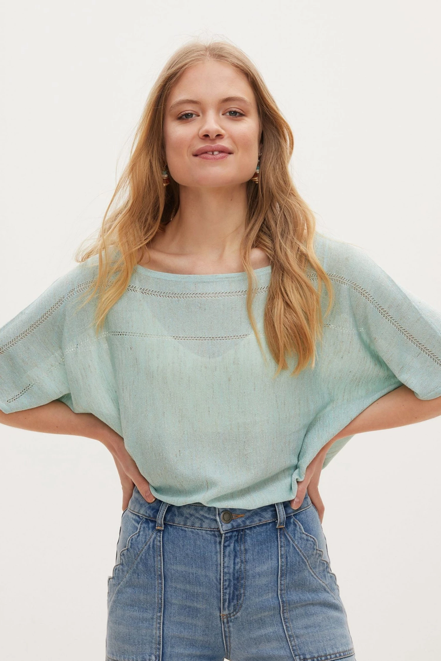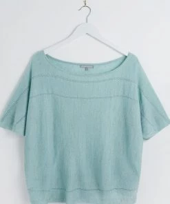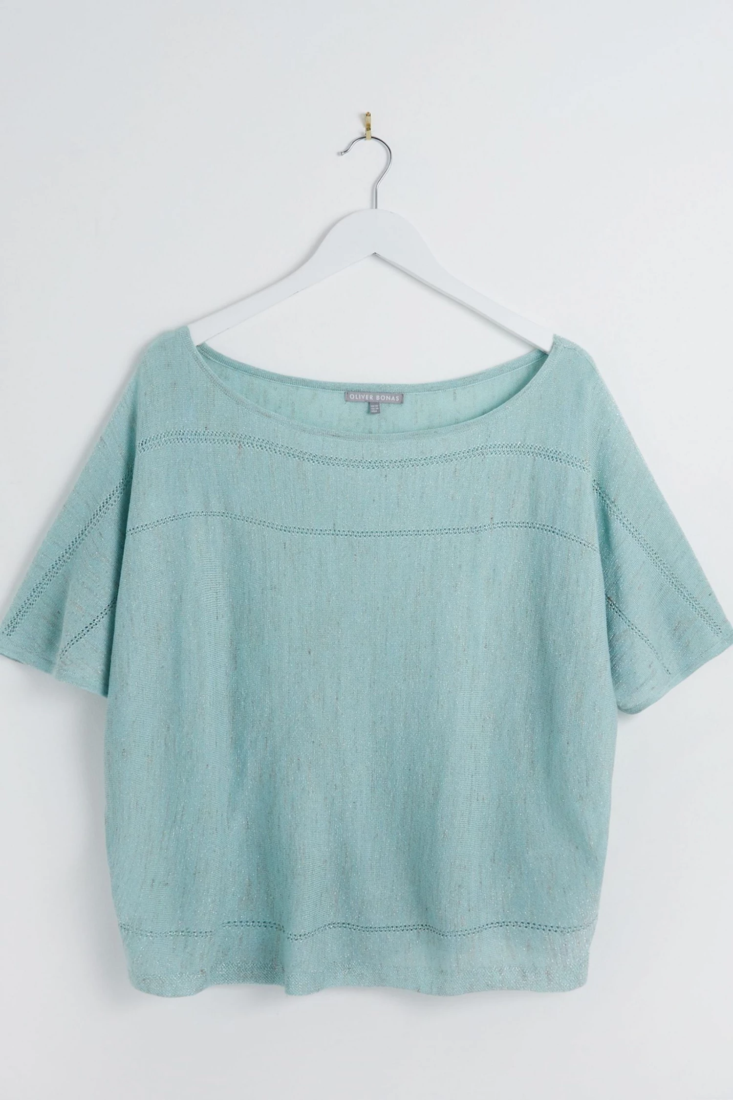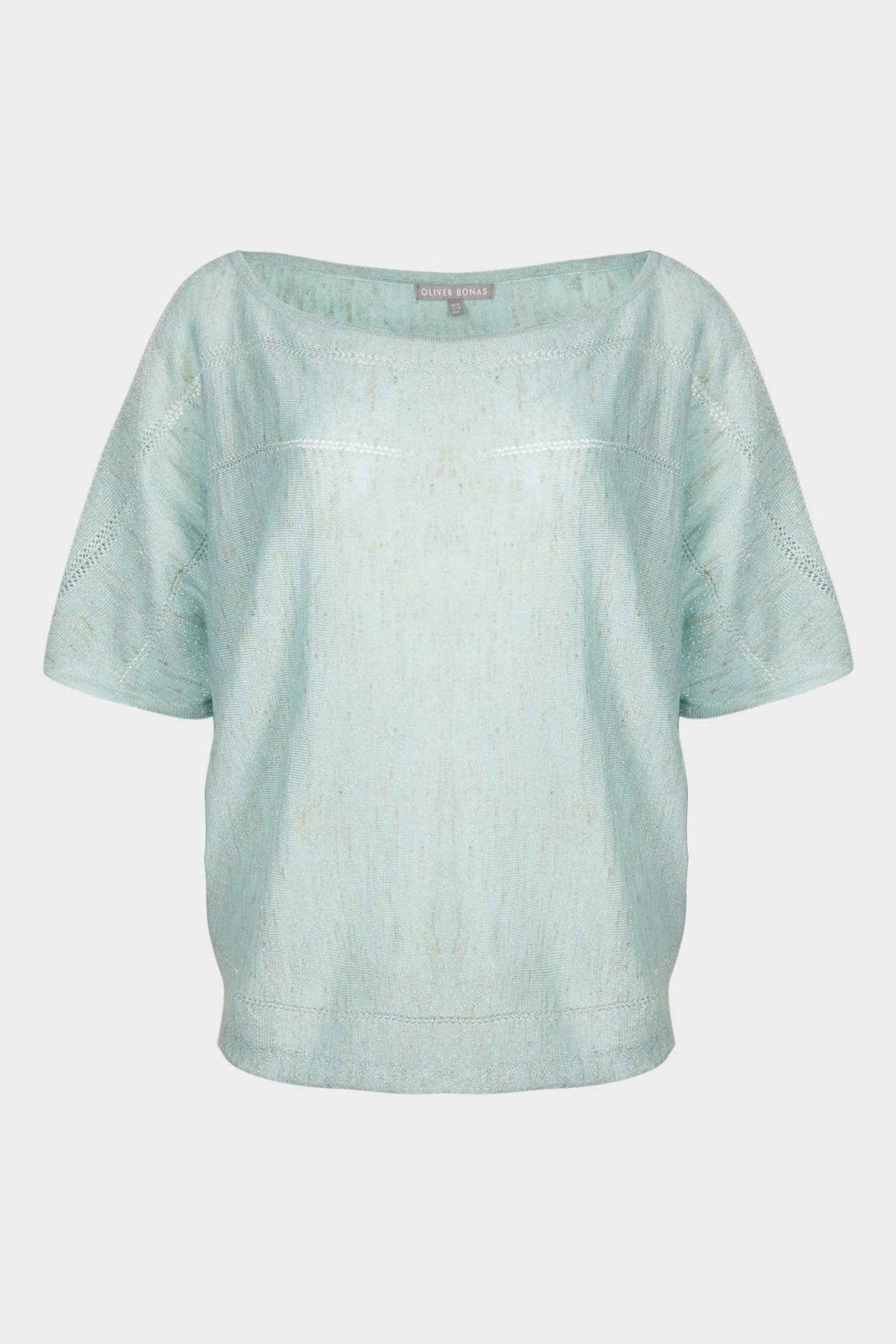 Add a sparkly touch to your comfortable fit with this boxy profile top. Complete with horizontal stitch detailing, this top has a wide neckline all in a fresh mint green tone.