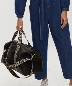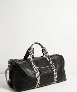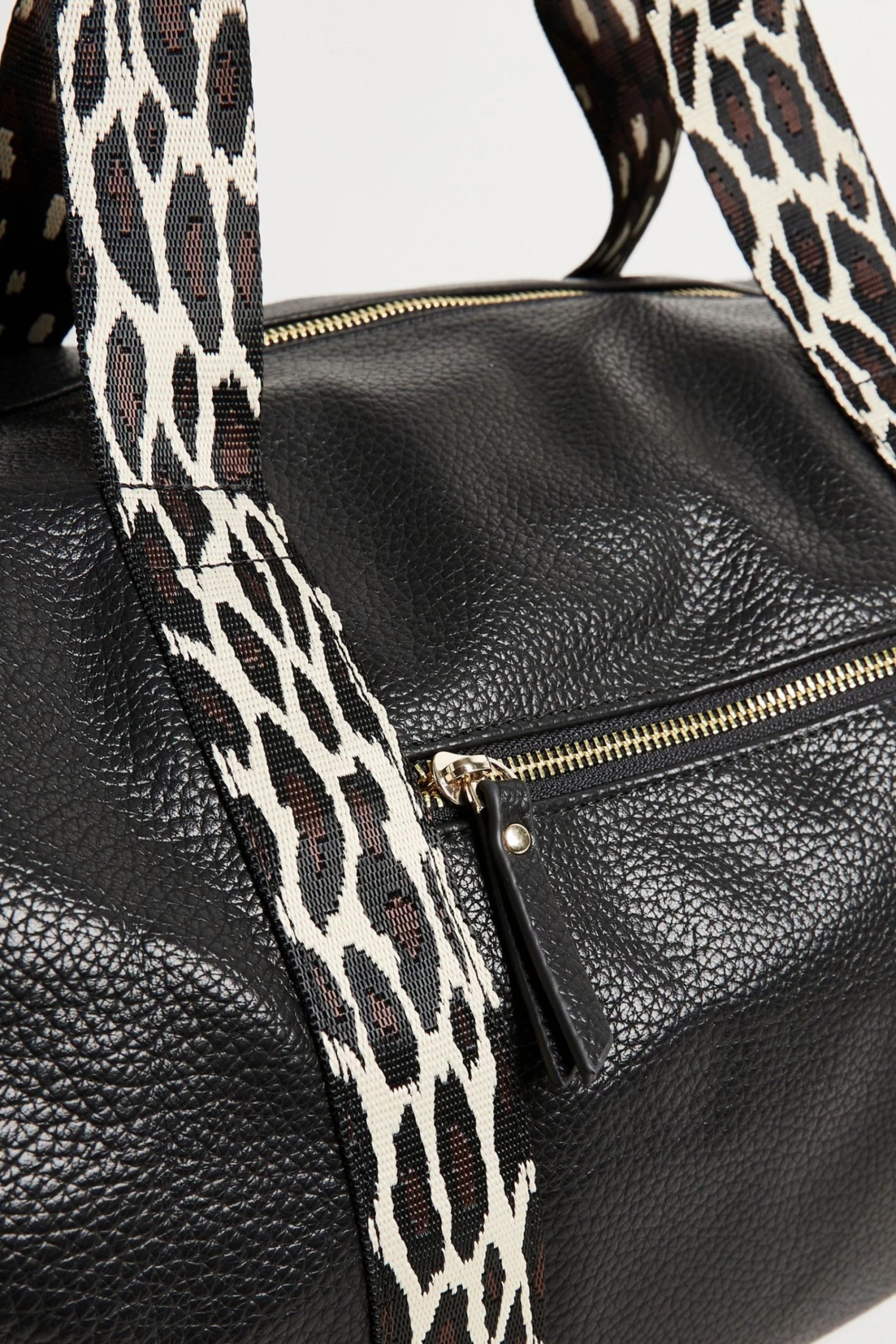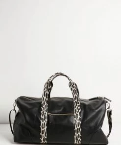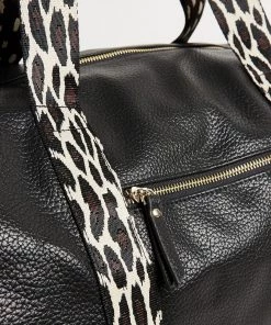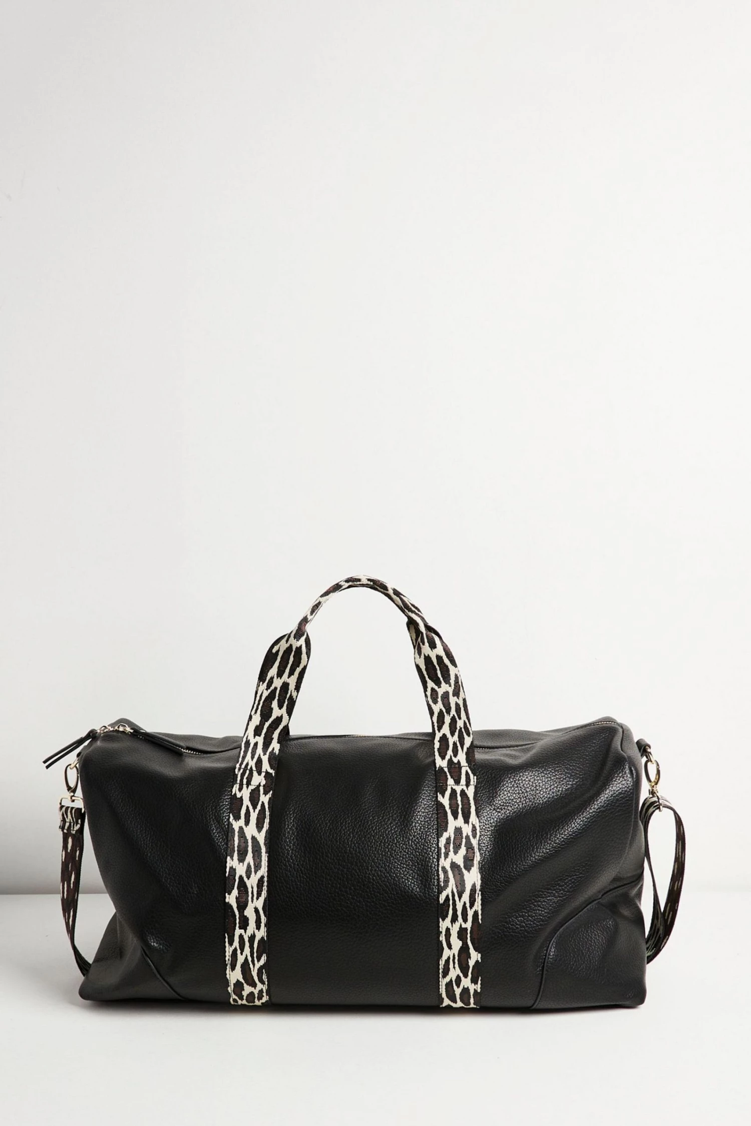 Pack everything you need for a weekend getaway in this large weekend bag. Made with PU, this black bag has a grab handle plus a removable cross-body strap in animal pattern. The weekend bag is complete with gold metalware and includes inner and outer zipped pockets to keep your smaller items secure.