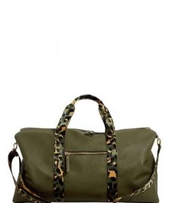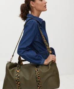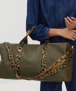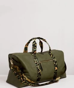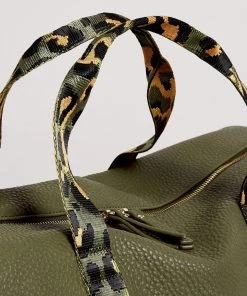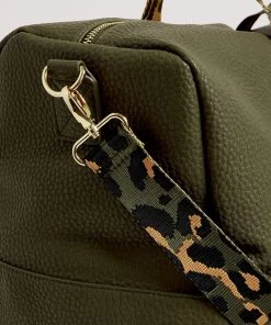 Pack everything you need for a weekend getaway in this large weekend bag. Made with PU, this khaki bag has a grab handle plus a removable cross-body strap in khaki and orange animal pattern. The weekend bag is complete with gold metalware and includes inner and outer zipped pockets to keep your smaller items secure.