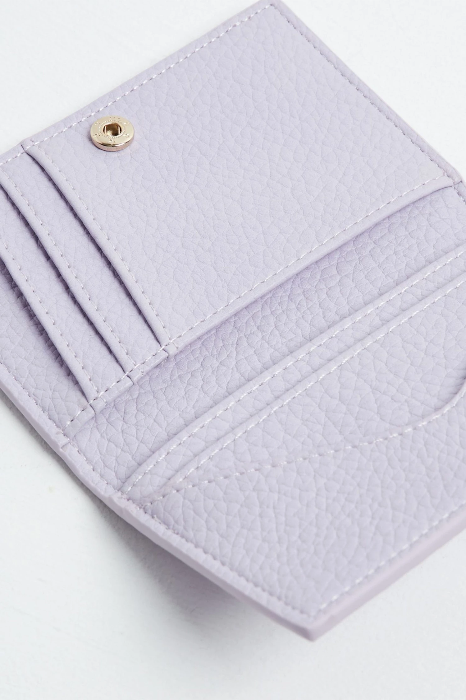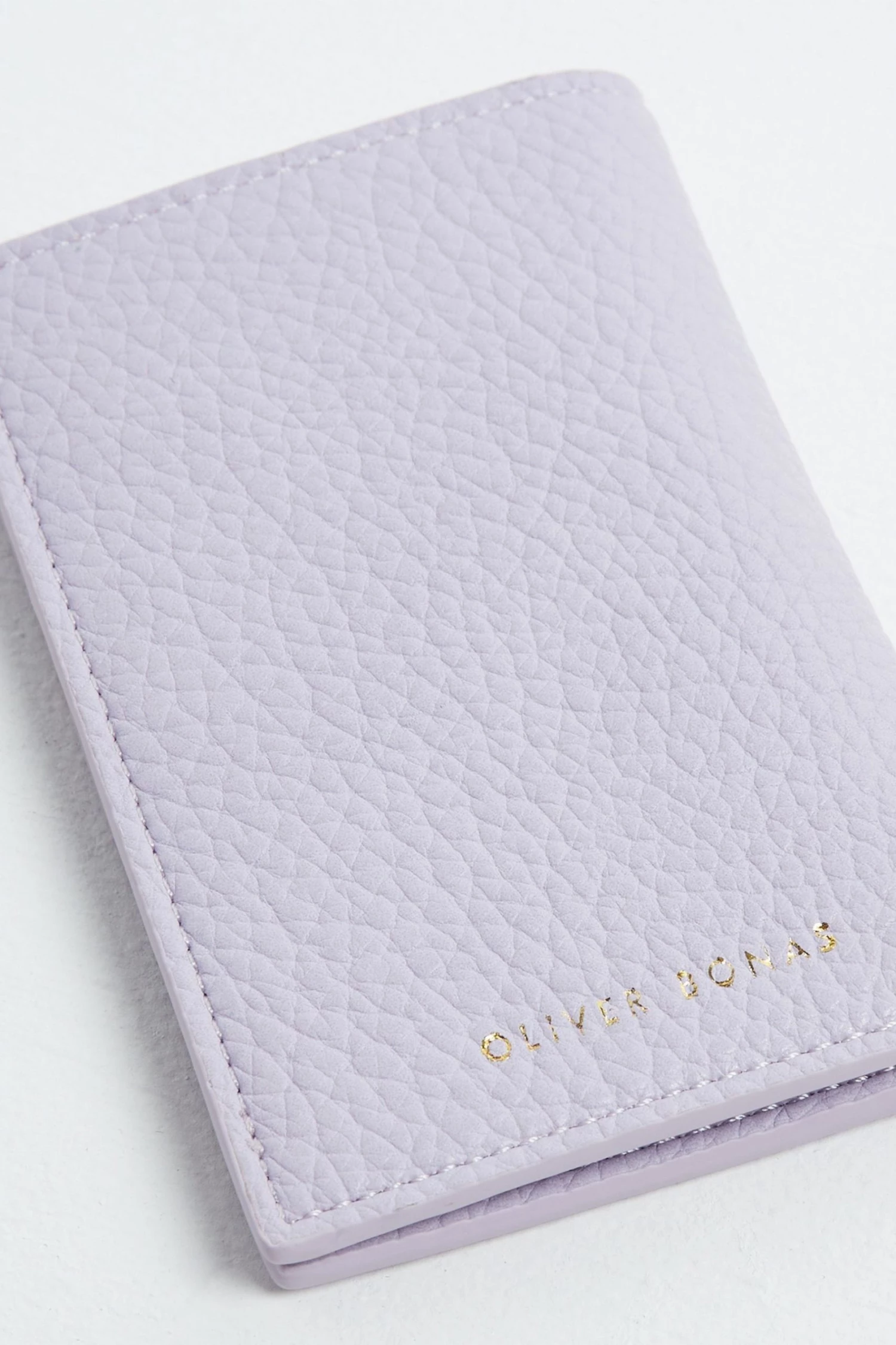 In a fresh lilac shade, this book style card holder has a gold toned button closure with multiple card slots inside. Gift to a loved one who is always on the go or put in your bag on your next outing.