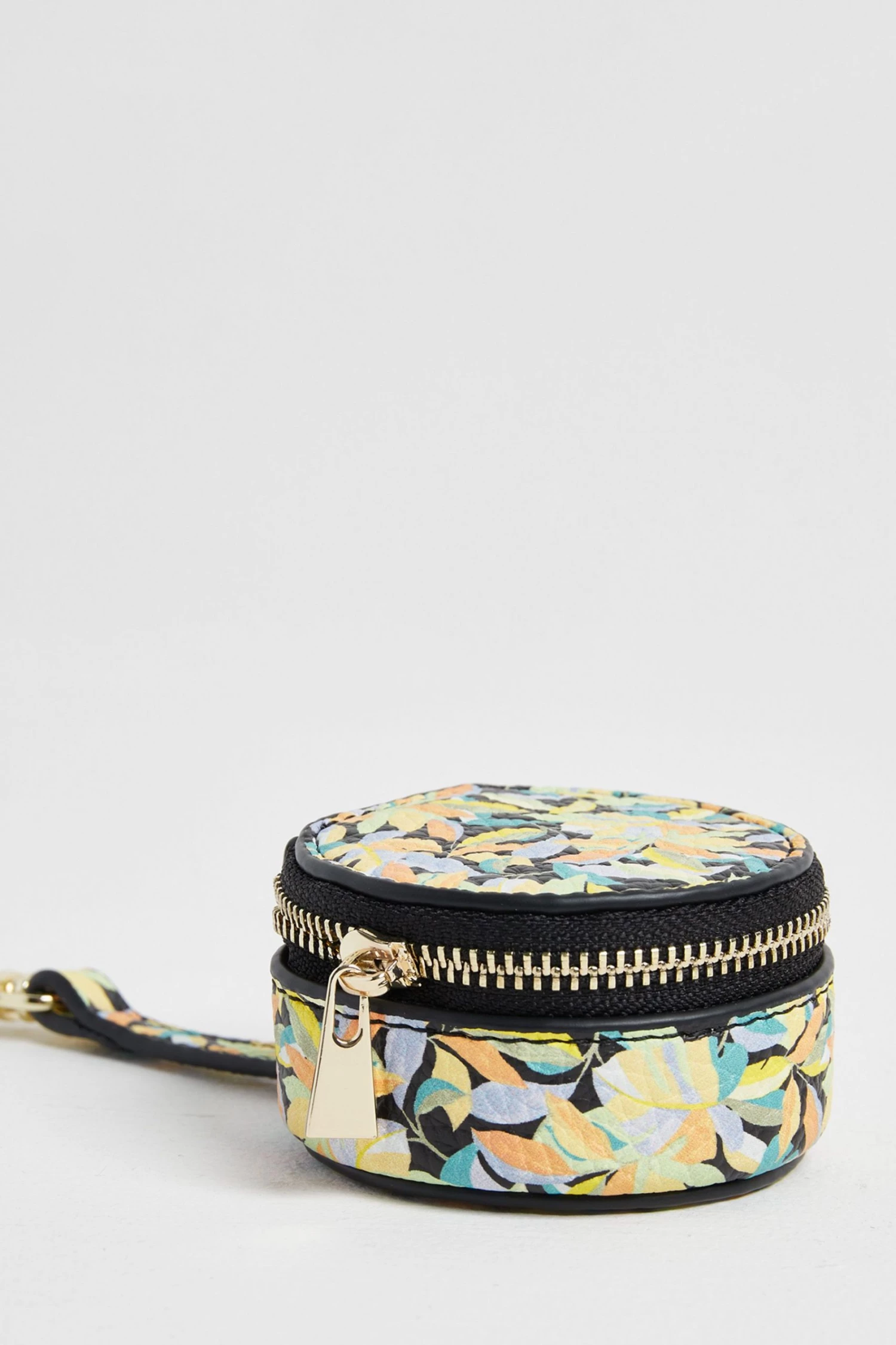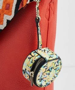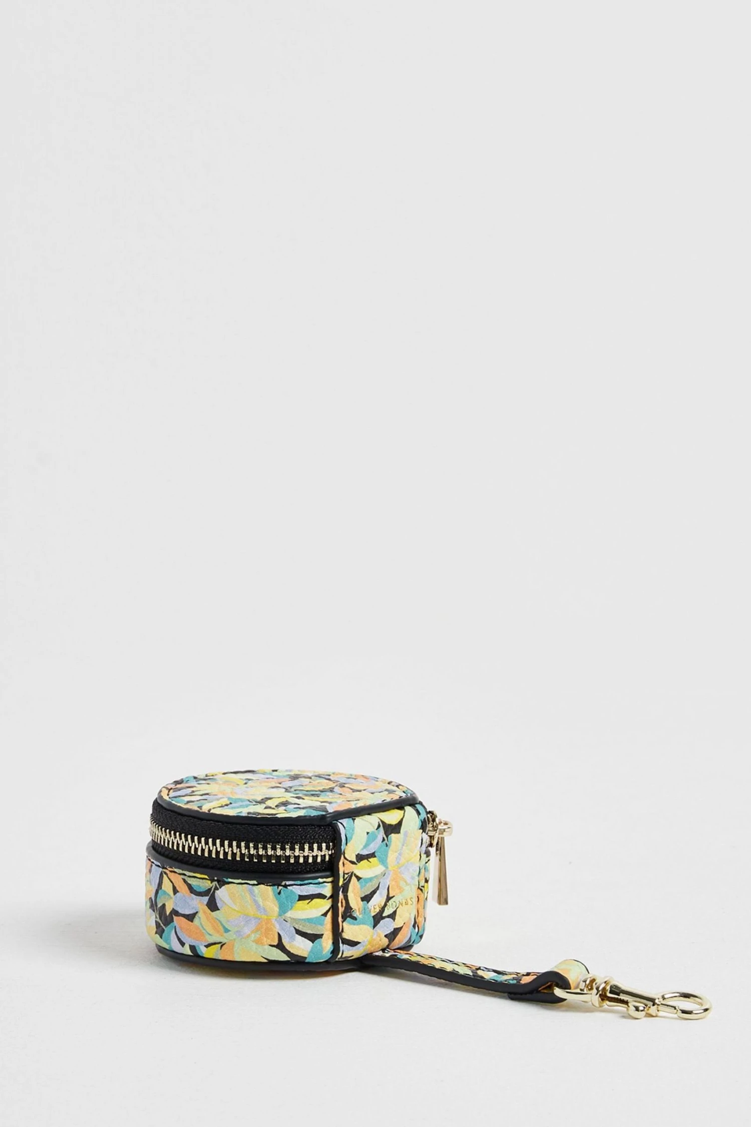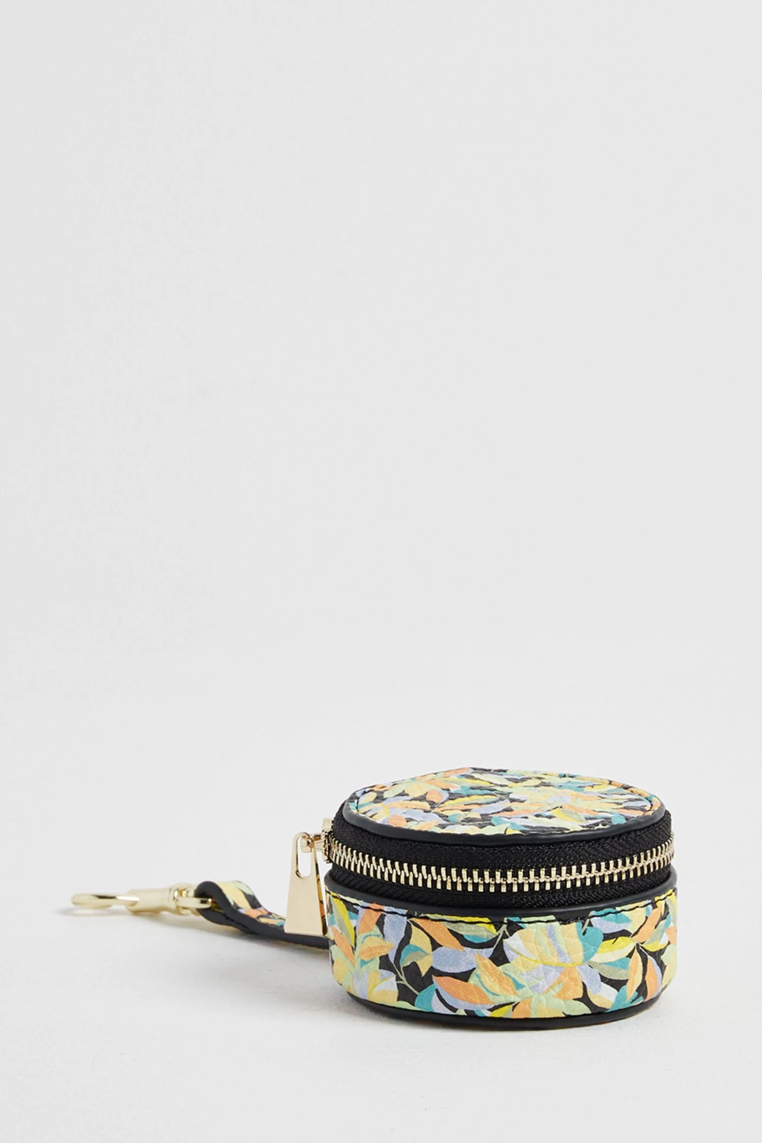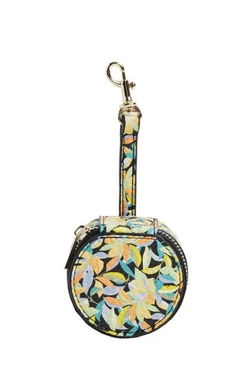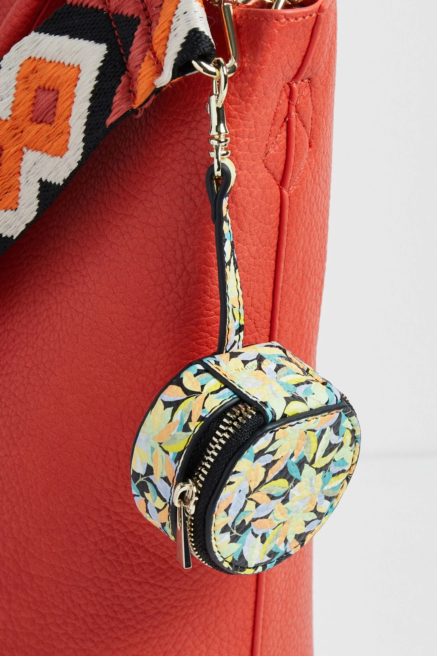In a circular profile and adorned in an orange print, the Lalie Earphones Holder has a gold-toned zip fastening and handle to attach to your handbag to keep your earphones safe and secure when not in use.