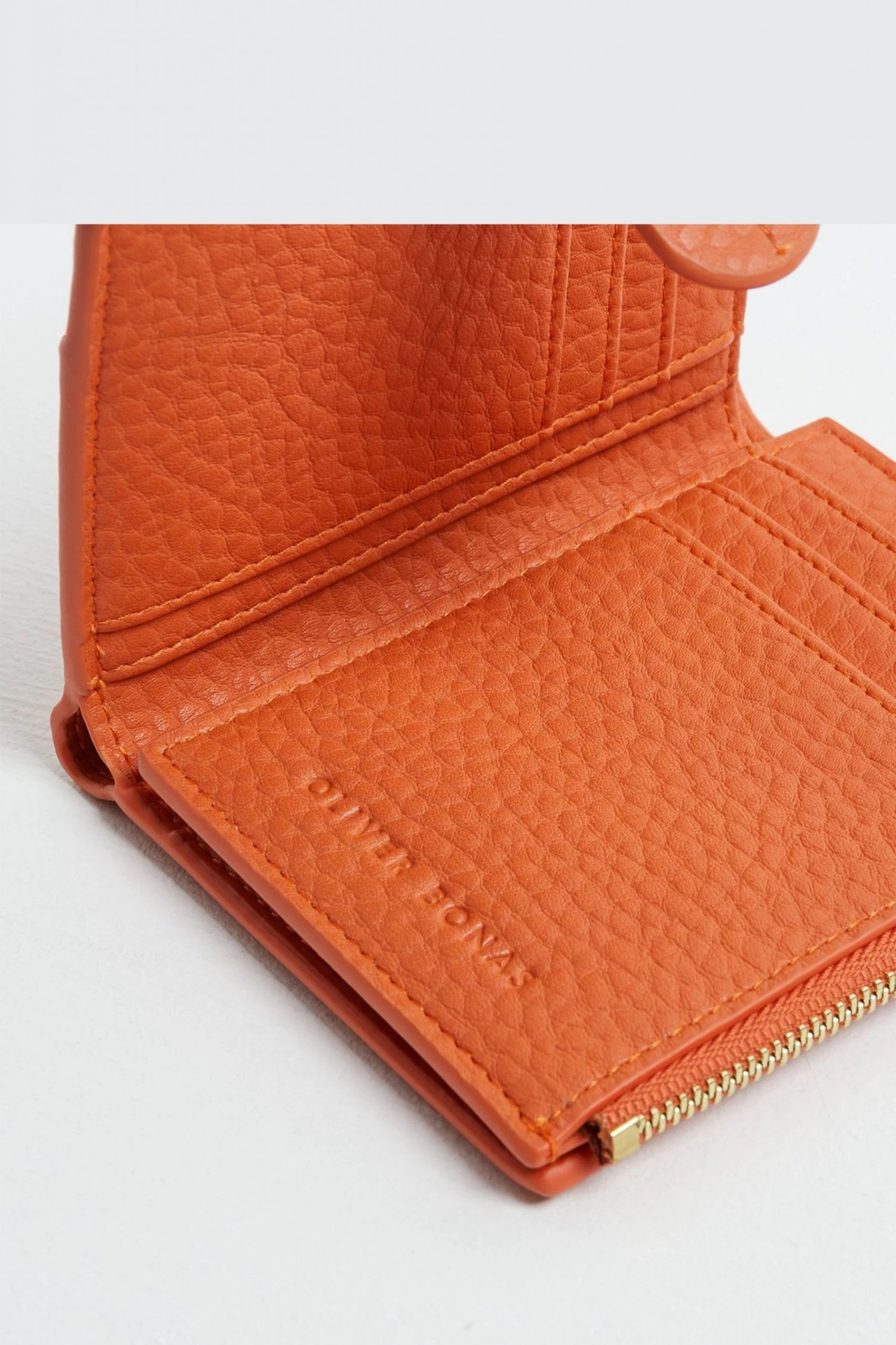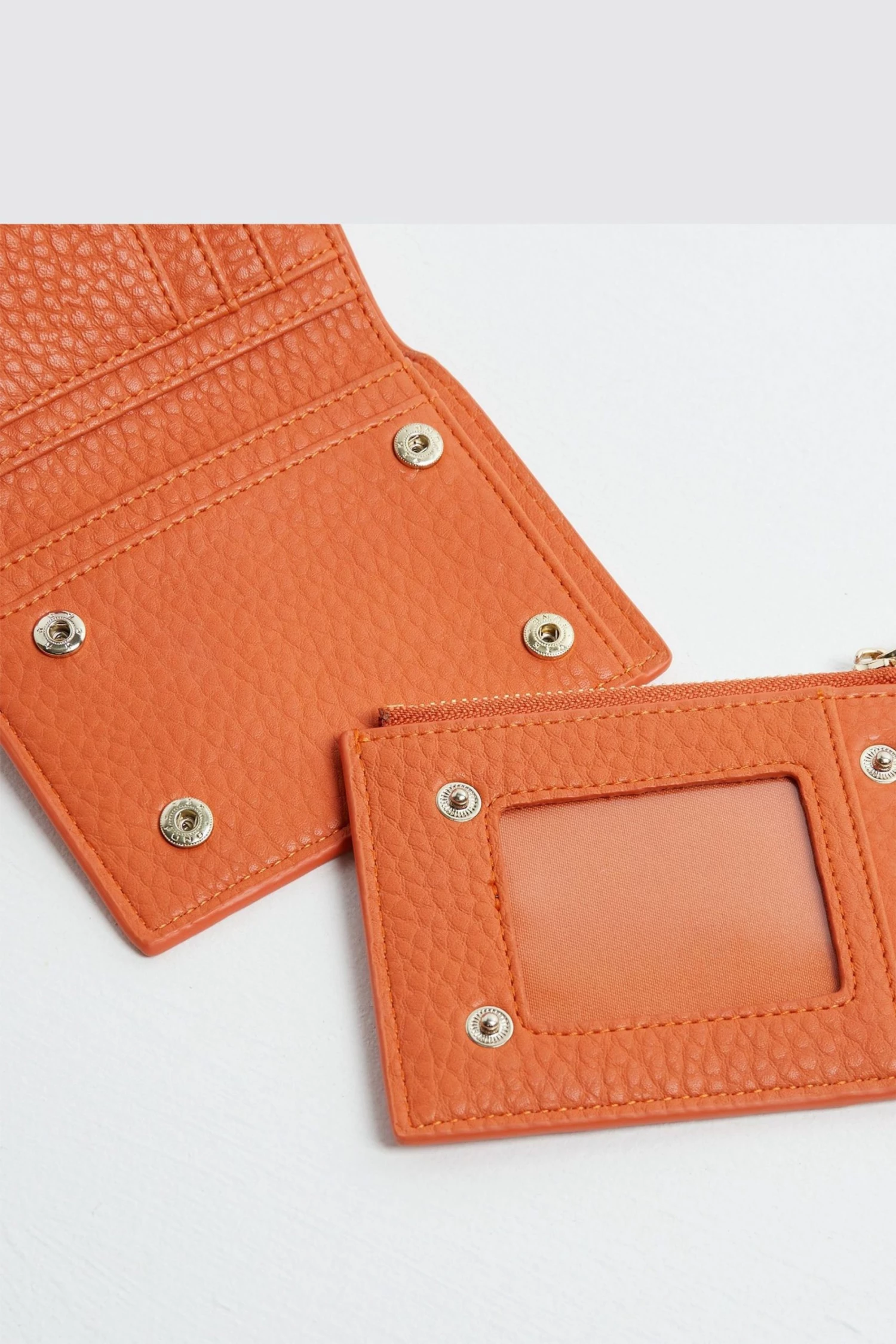 In a rust orange tone, this purse features card slots and detachable ID and zipped compartment, handy for when you only need the essentials.