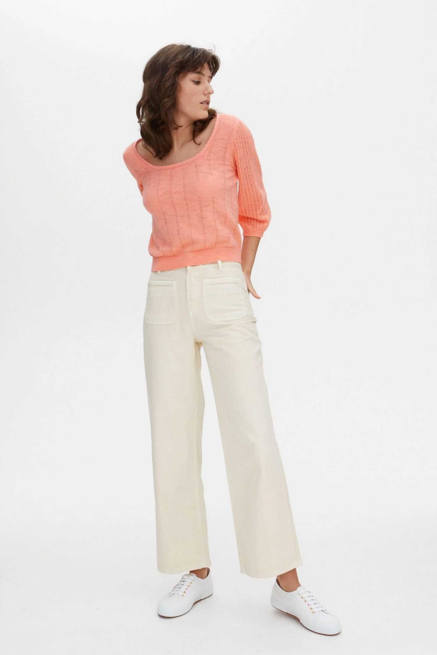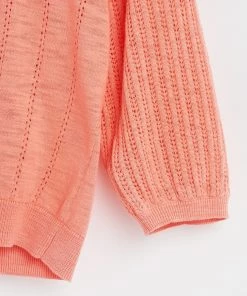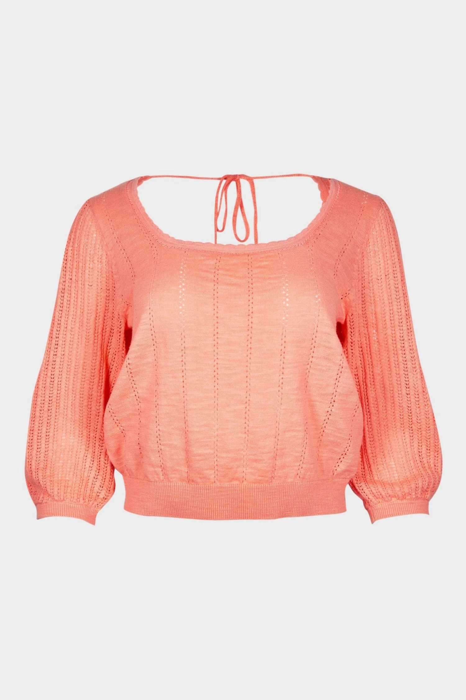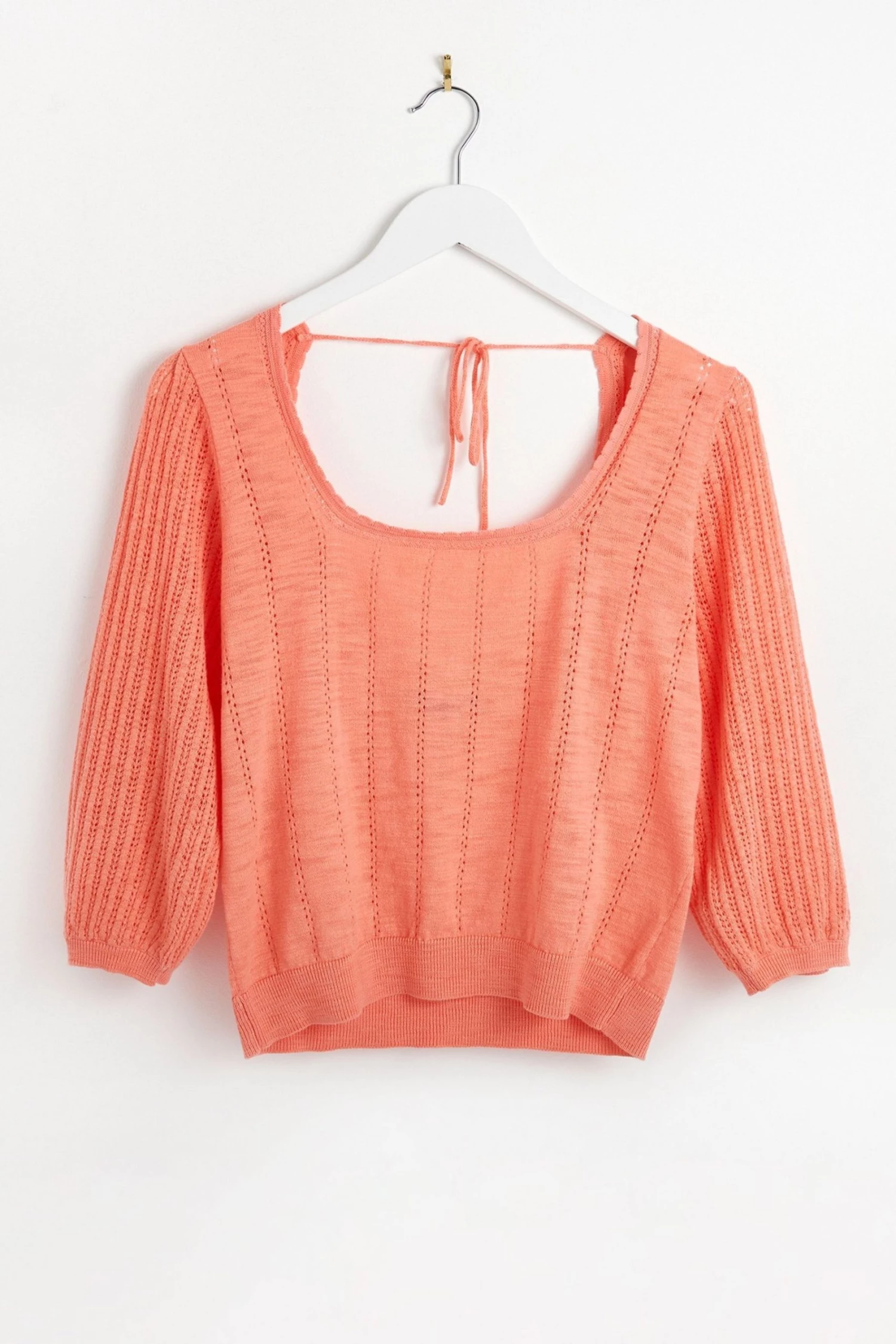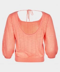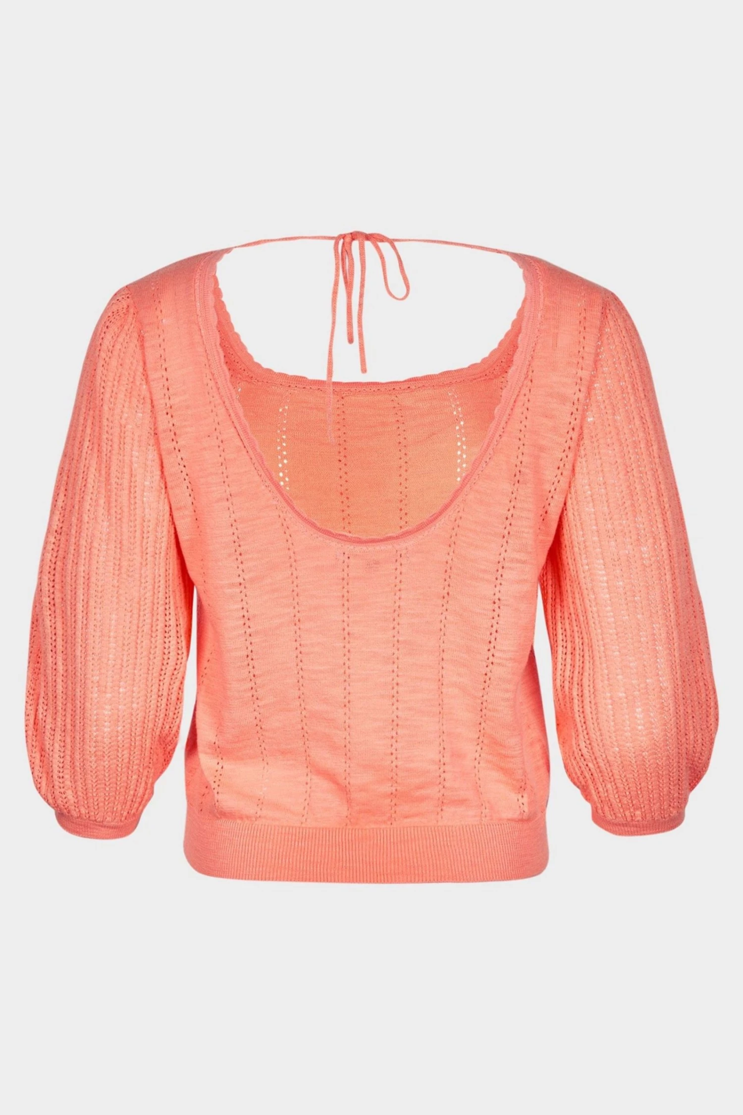 Pairing a relaxed fit with scoop back and tie fastening, this coral pink knitted top features delicate stitch detailing and ribbed hems for a comfortable fit.