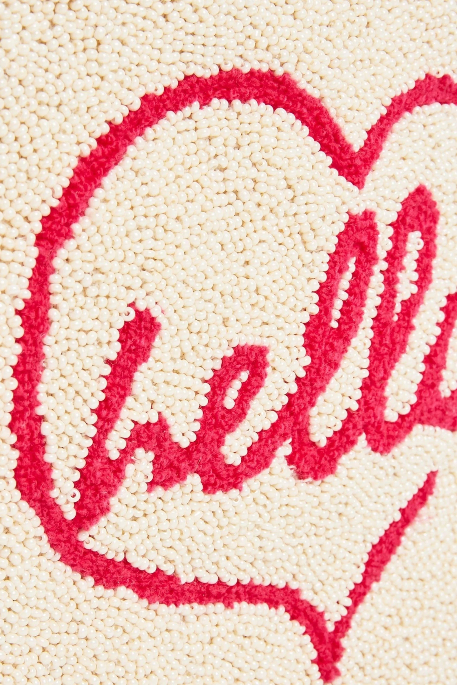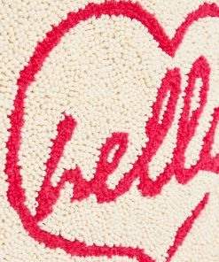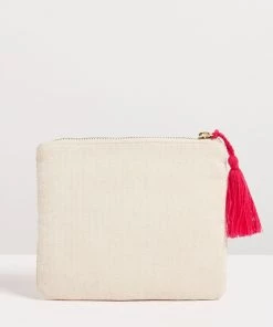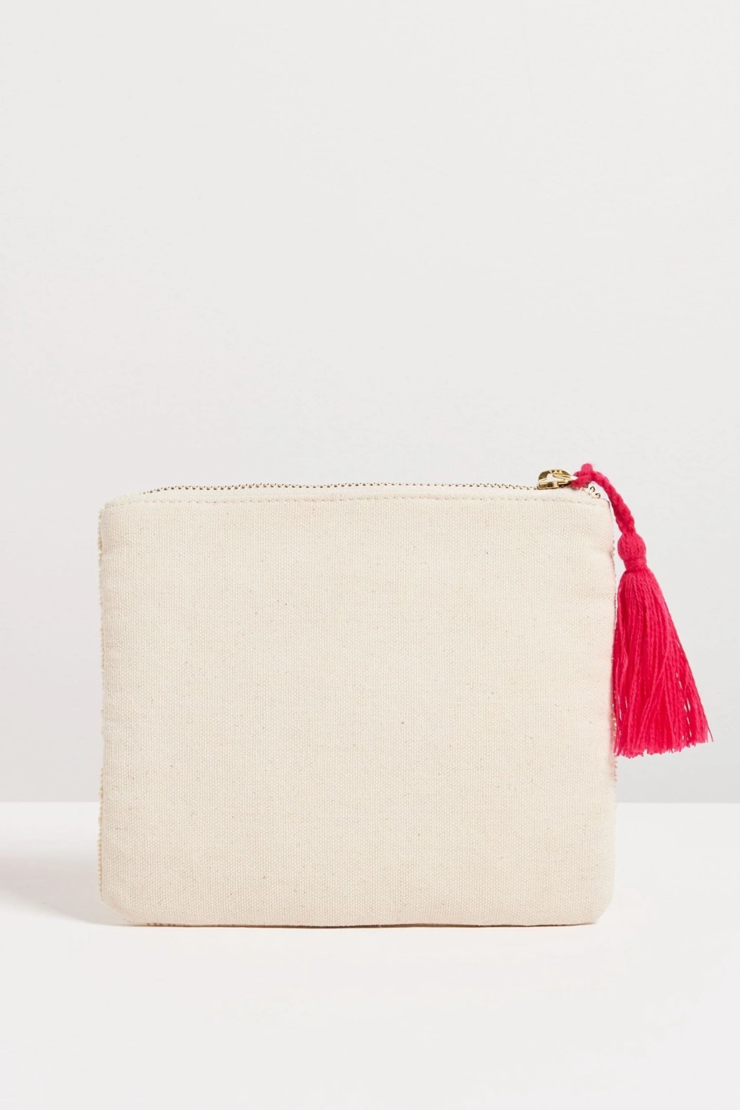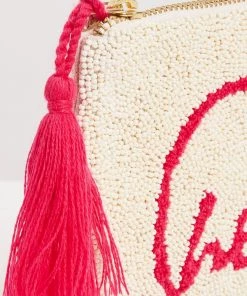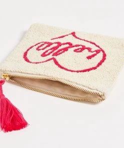 Add a little love to your accessories with this textured pouch. In a cream tone, it features red Hello text in a heart with a matching pink tassel and gold-toned zip fastening.