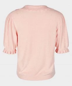 In a peach pink tone, this easy-going top is cut from a super-soft fabric in relaxed silhouette, with a scalloped V-neckline and frill detailing at the cuffs.