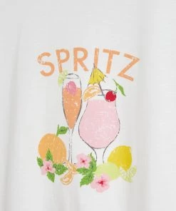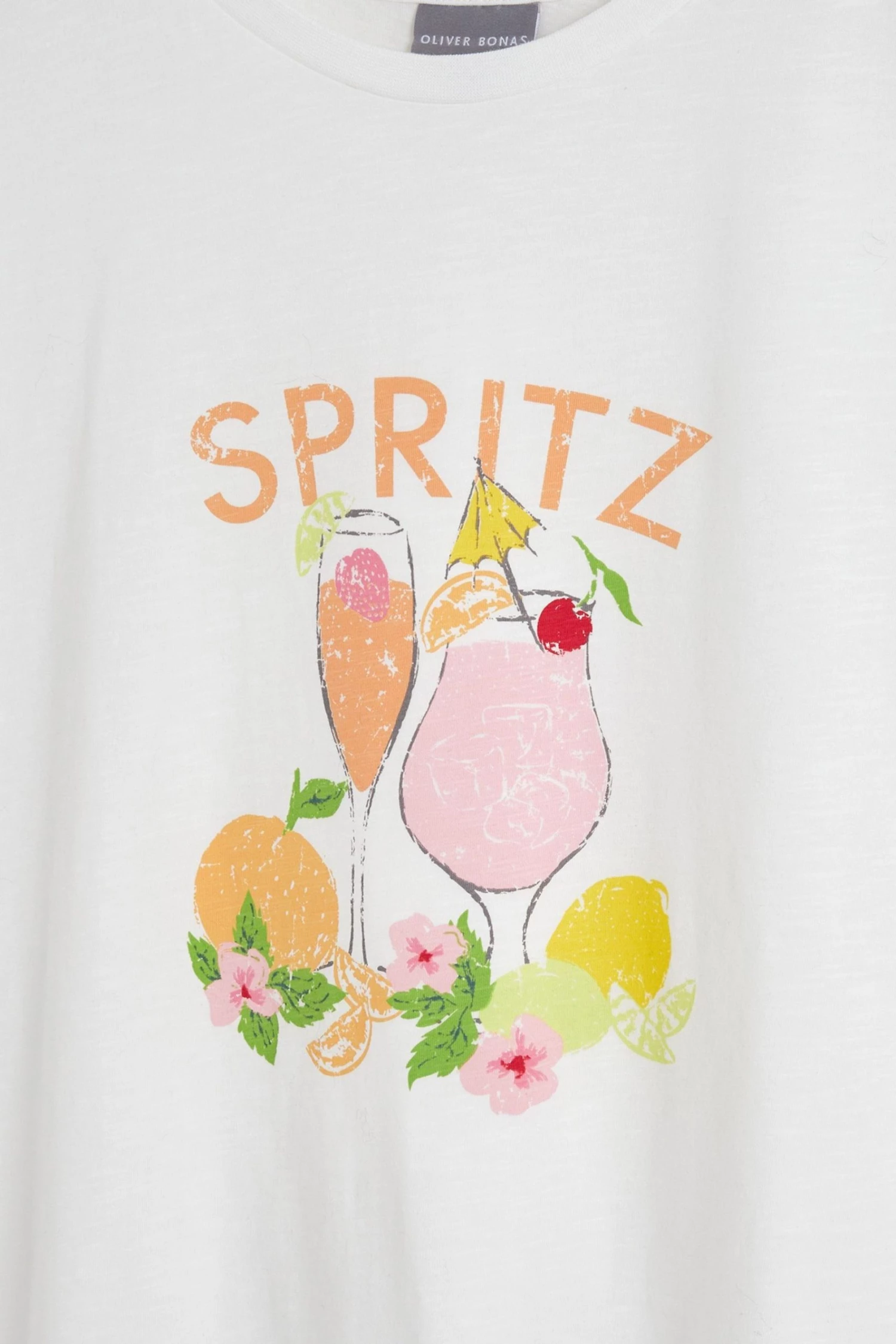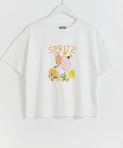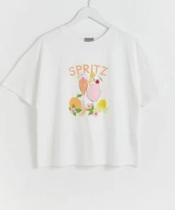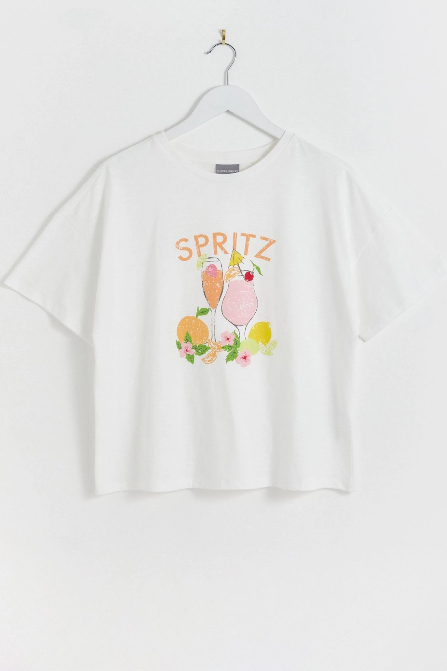 Add a spritz of colour to your wardrobe with a graphic t-shirt. In a mix of orange, pink, yellow and green tones, this fruity cocktail inspired design is joined by a Spritz slogan and is printed onto a classic fitting white t-shirt. Complete with a classic crew neckline and short sleeves, pair with your next brunch outing for the ultimate ensemble.