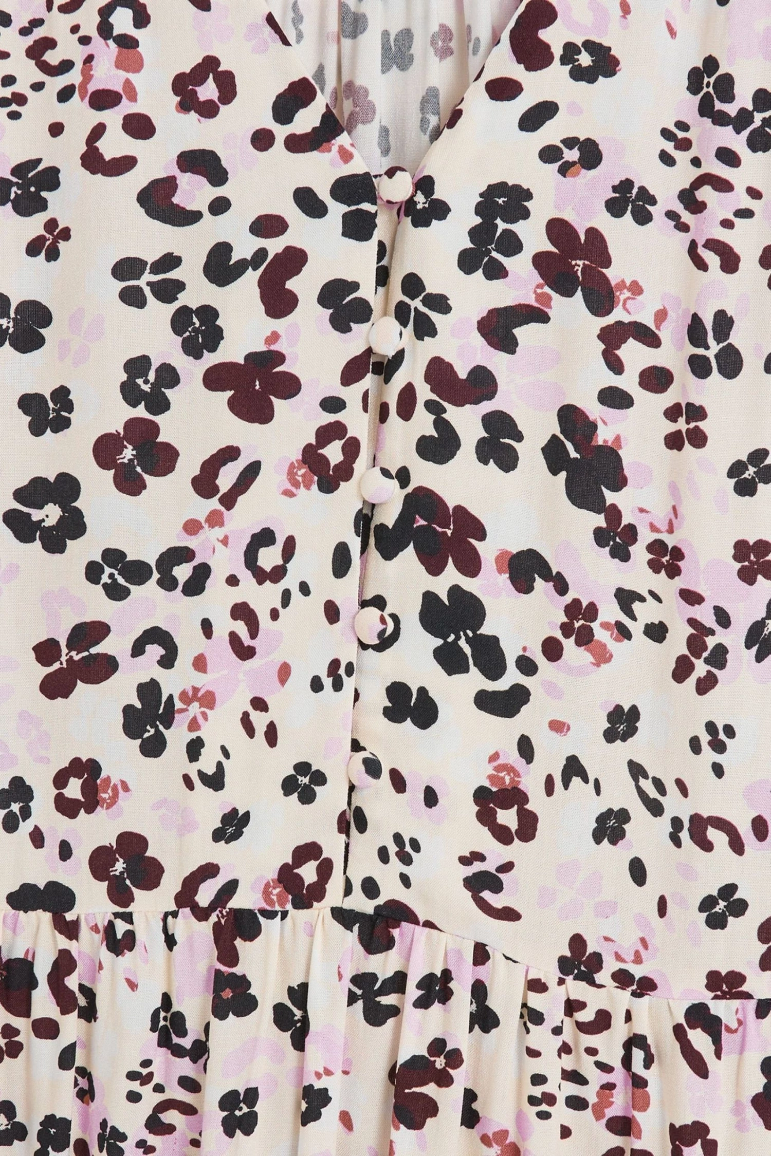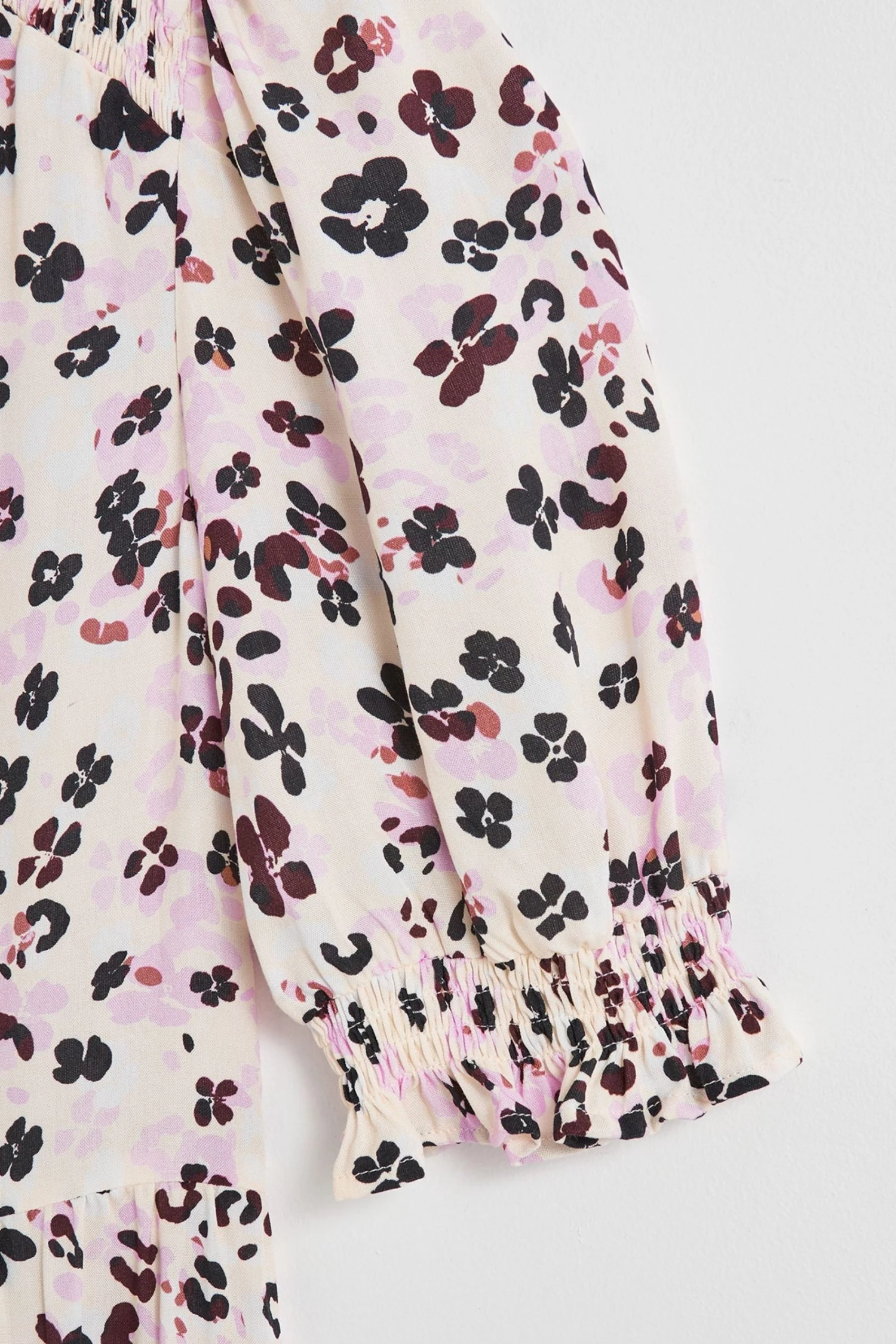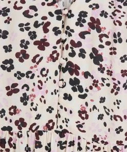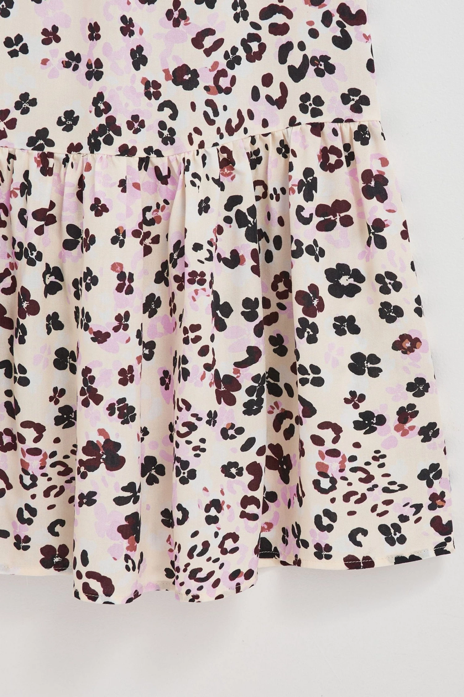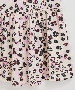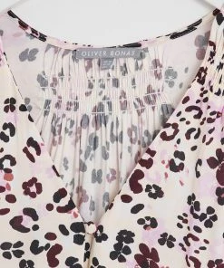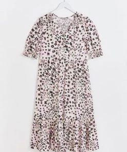 In a relaxed silhouette, this midi dress features a cheetah print pattern in pink, white and black tones, complete with covered button fastenings through the front. Shirred detailing runs throughout this midi dress and sits at the cuffs and back in an elegant finish.