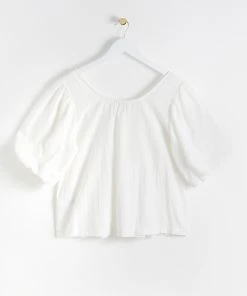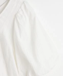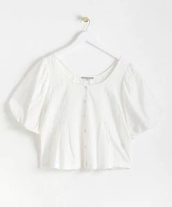 Oliver Bonas White Puff Sleeve Button Through Cotton Blouse