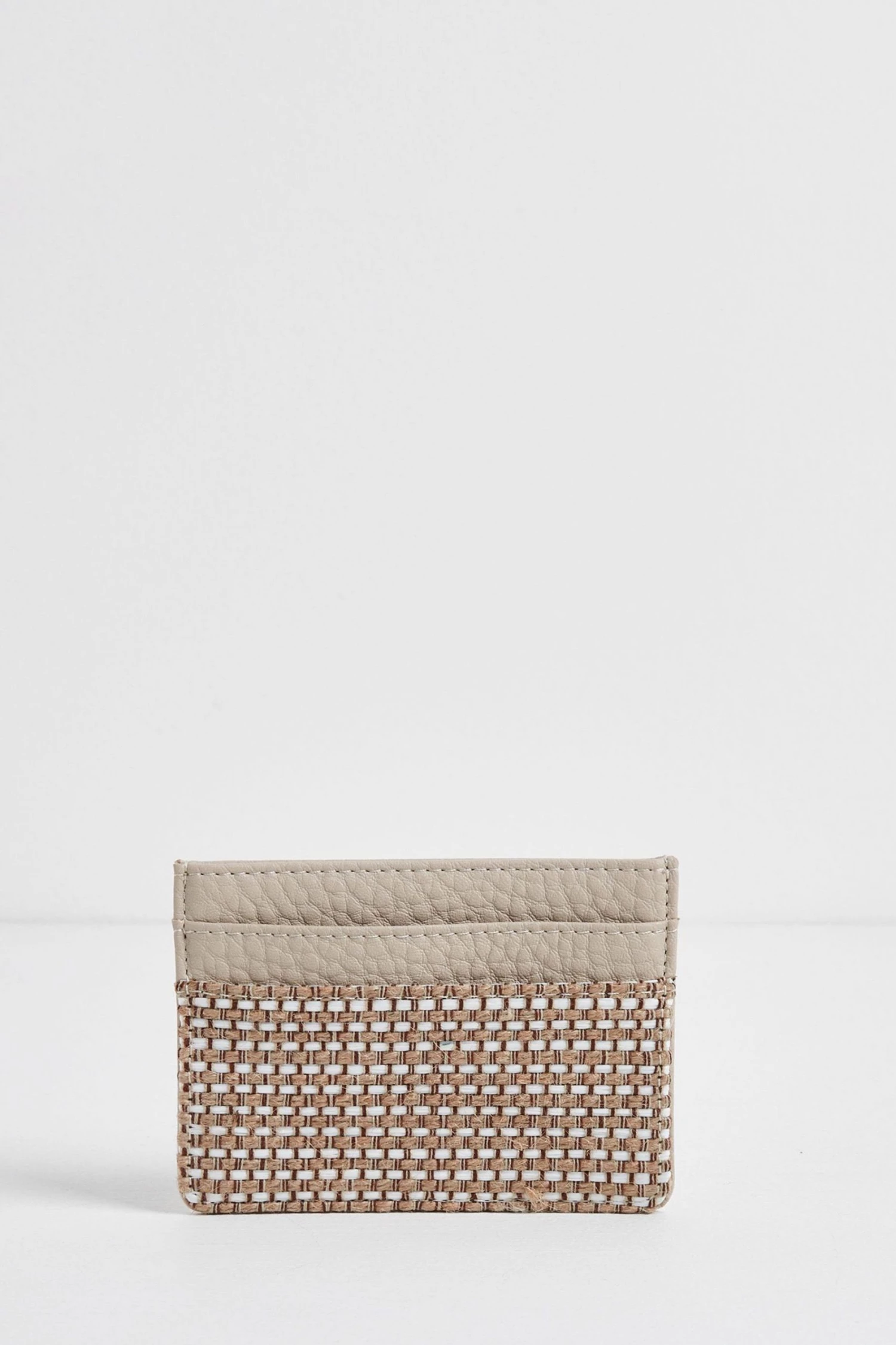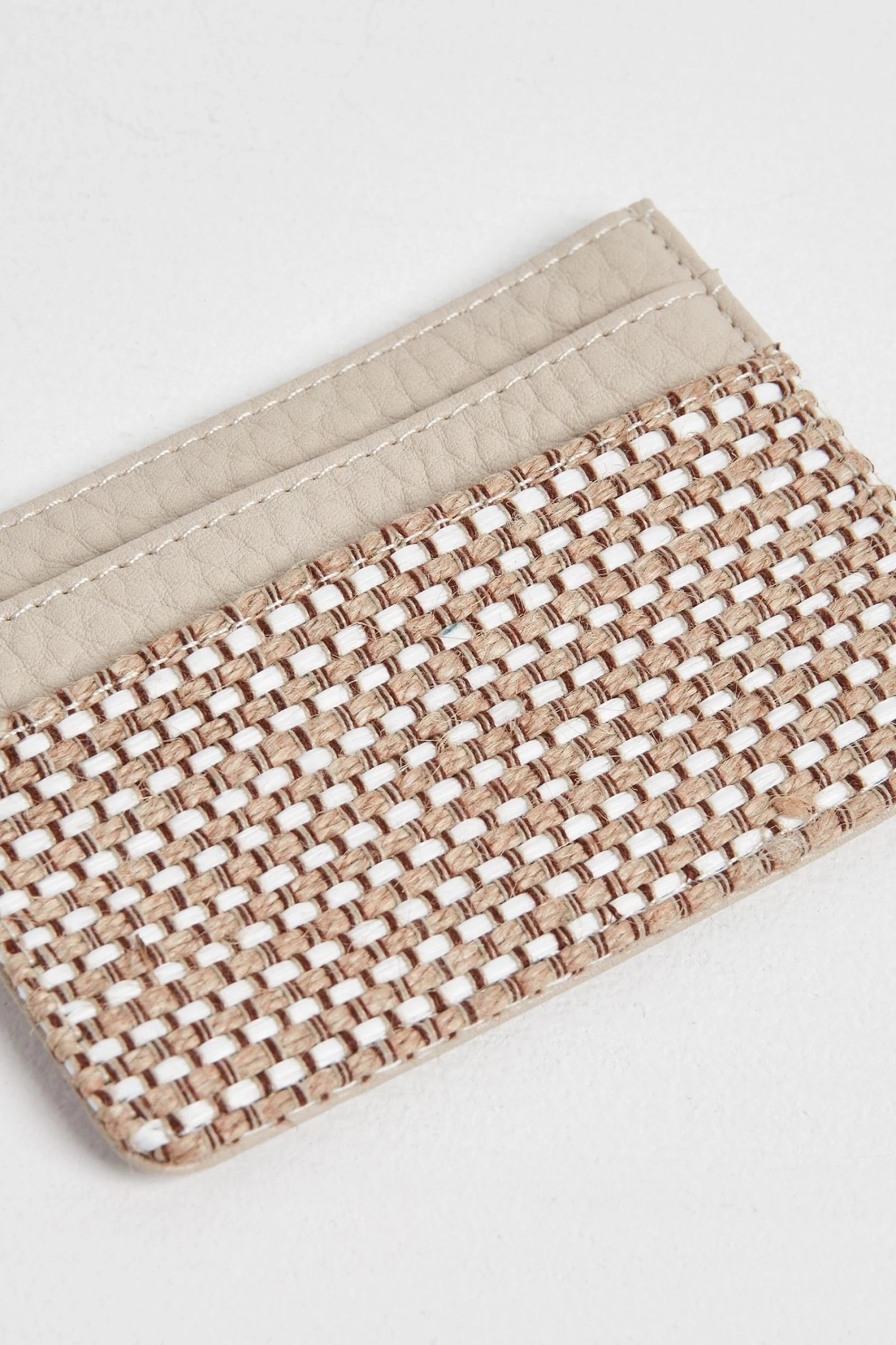 Boasting a woven design, keep your essential cards safe in this compact card holder, finished in a neutral brown tone.