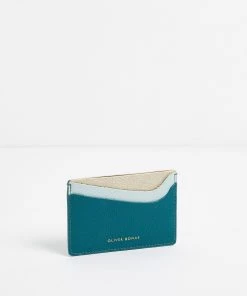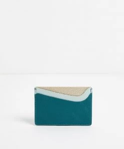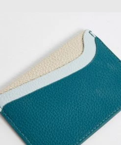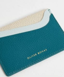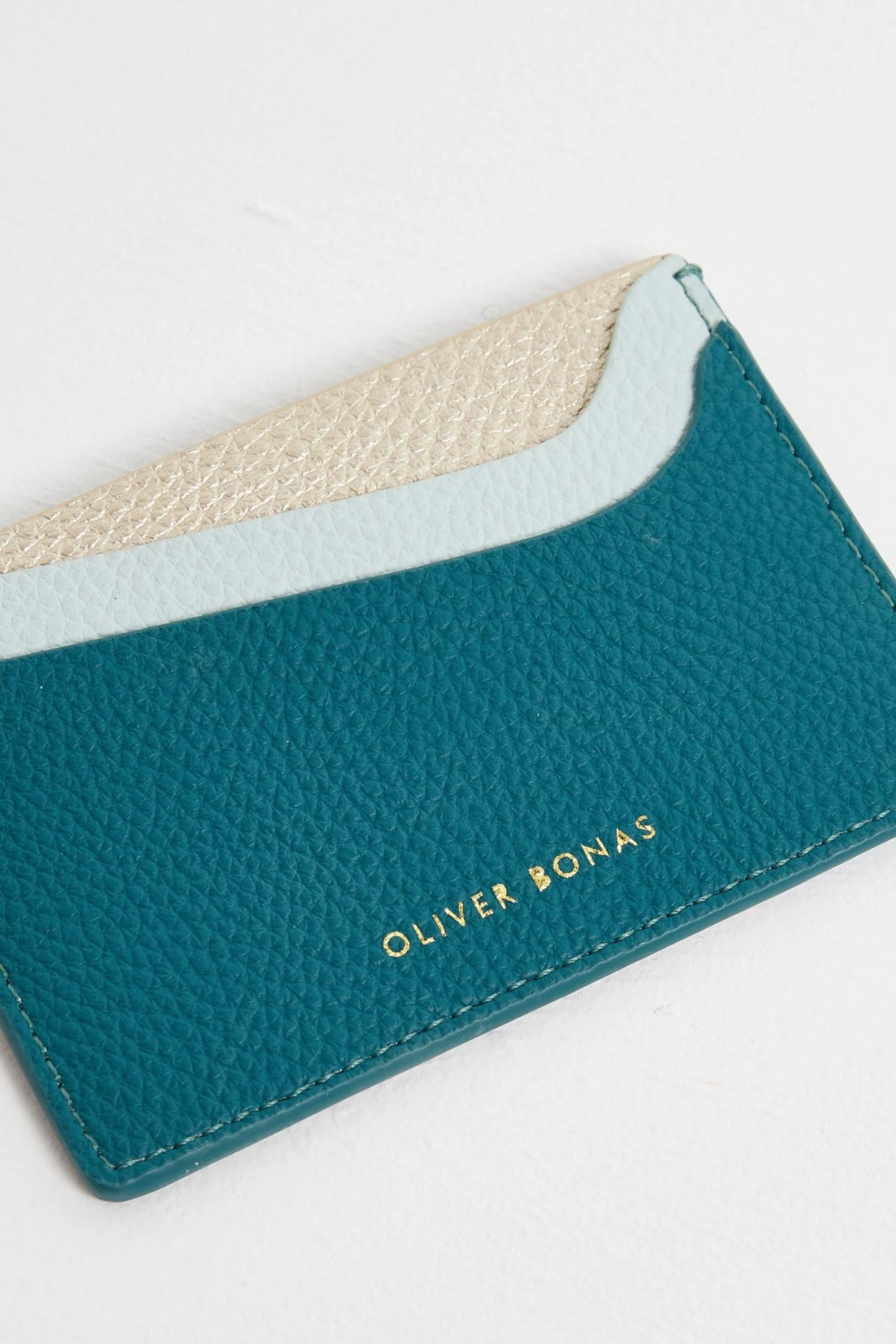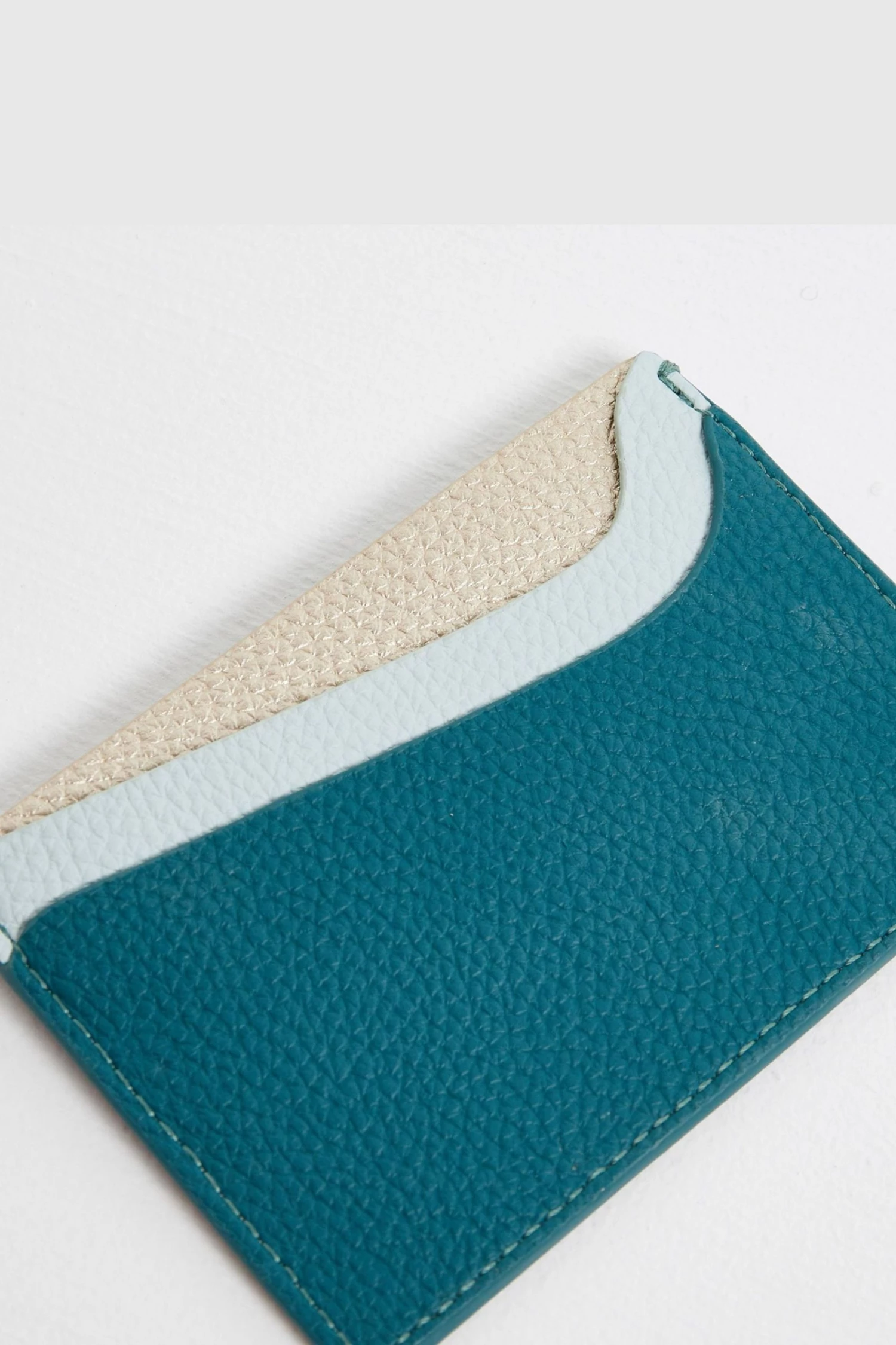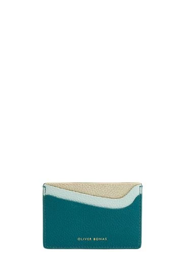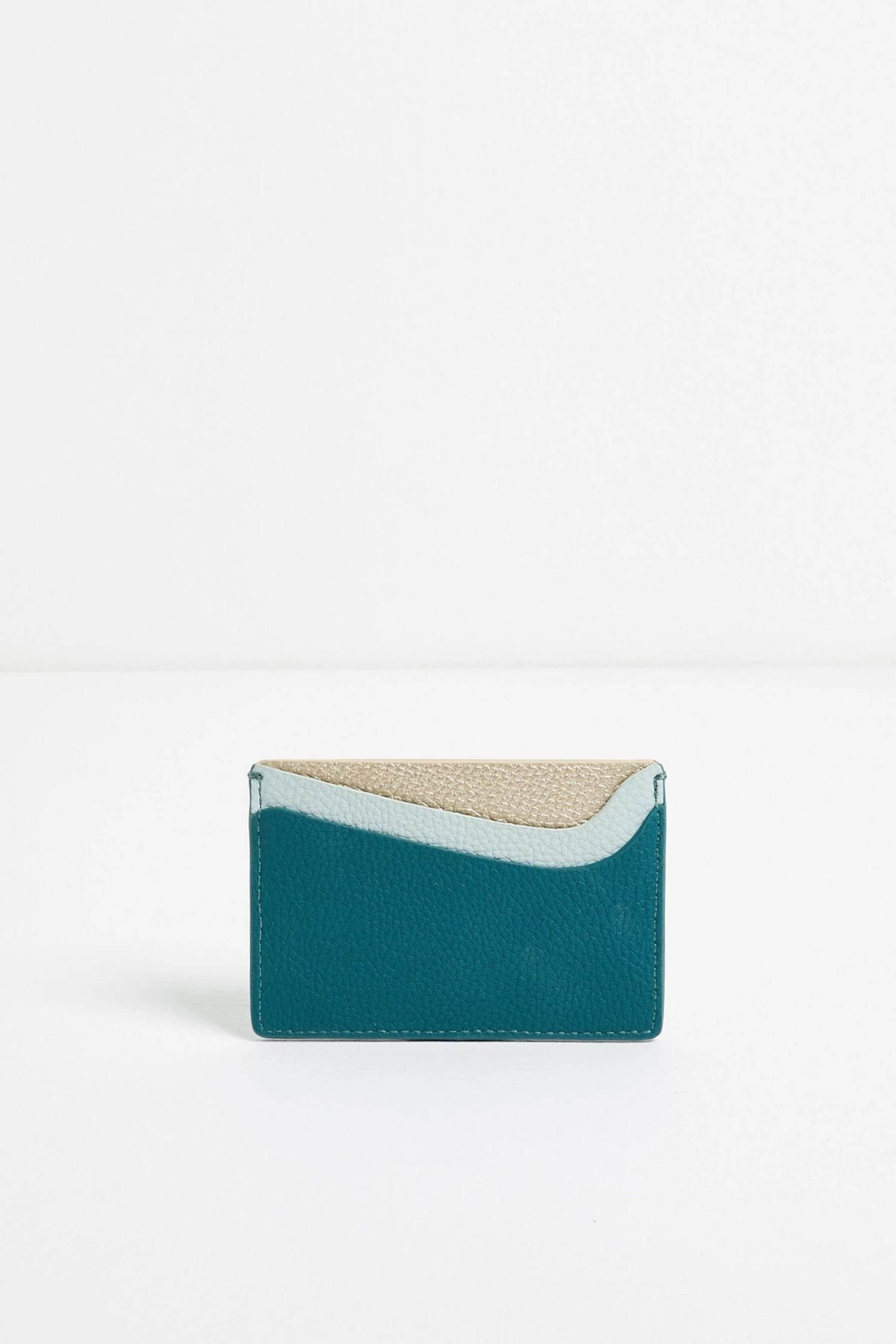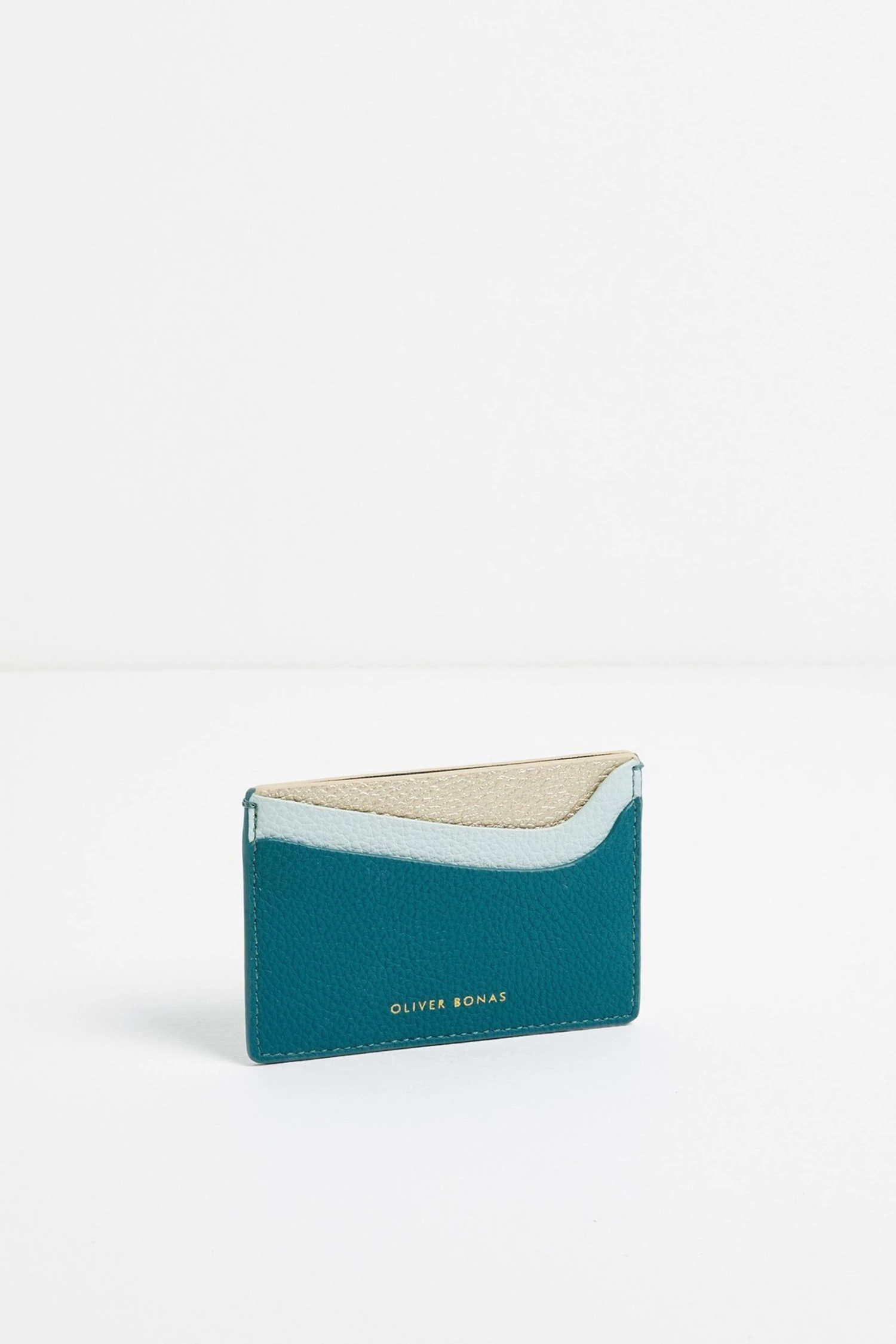 Add a pop of colour to your accessories with this teal green card holder, featuring a wavy design with contrasting mint and metallic golden panels.